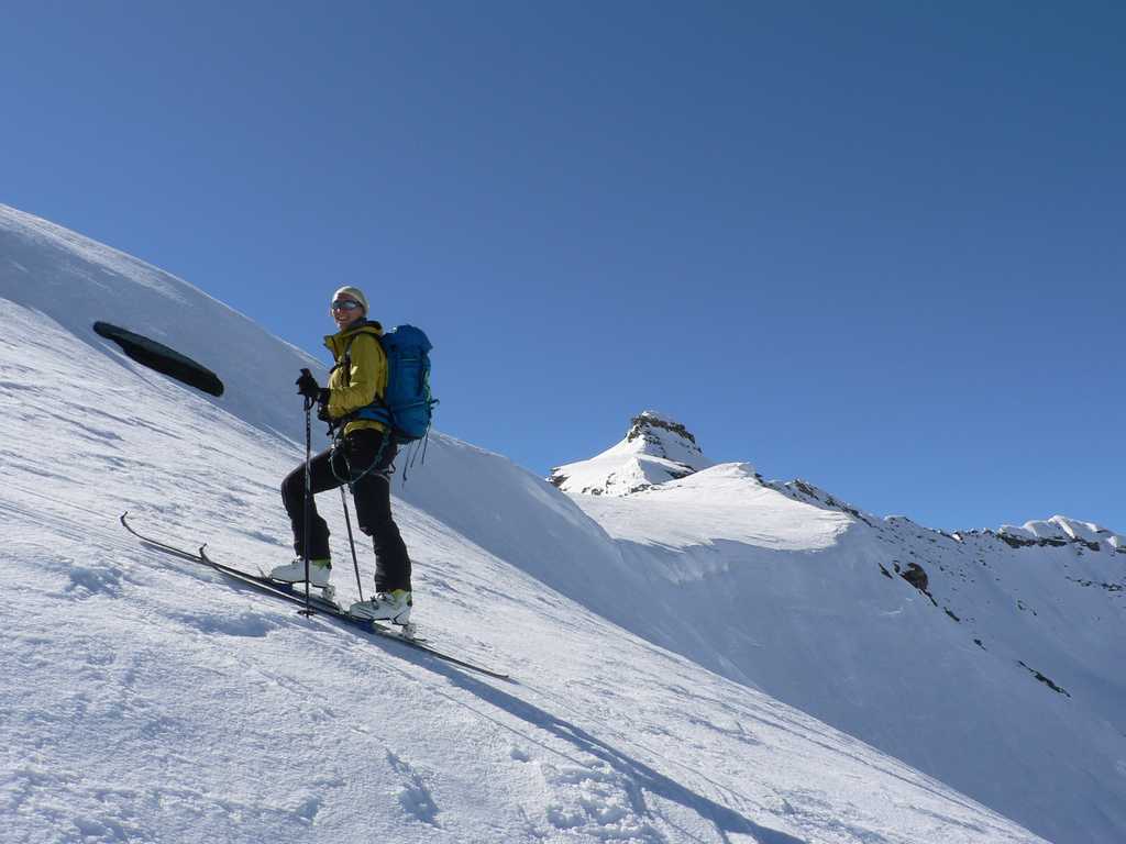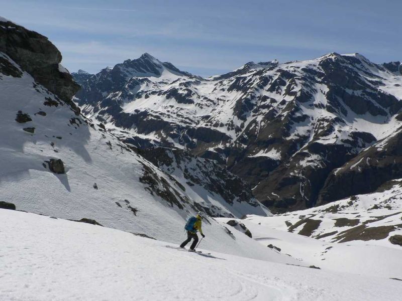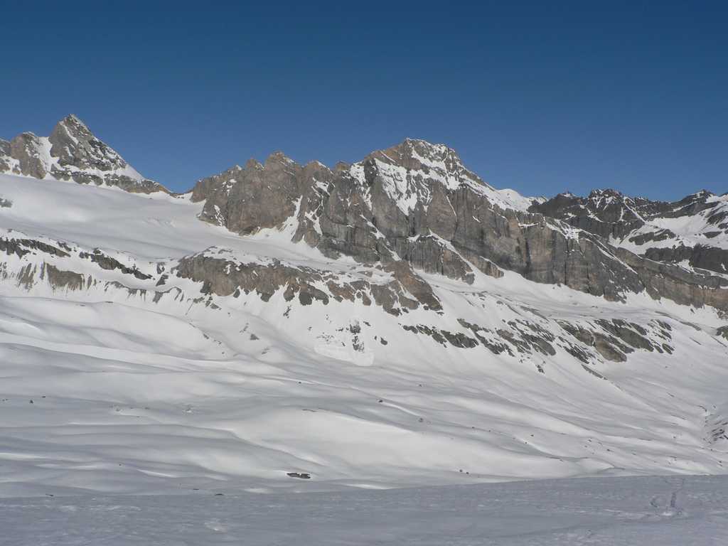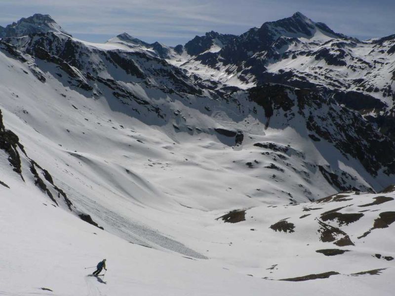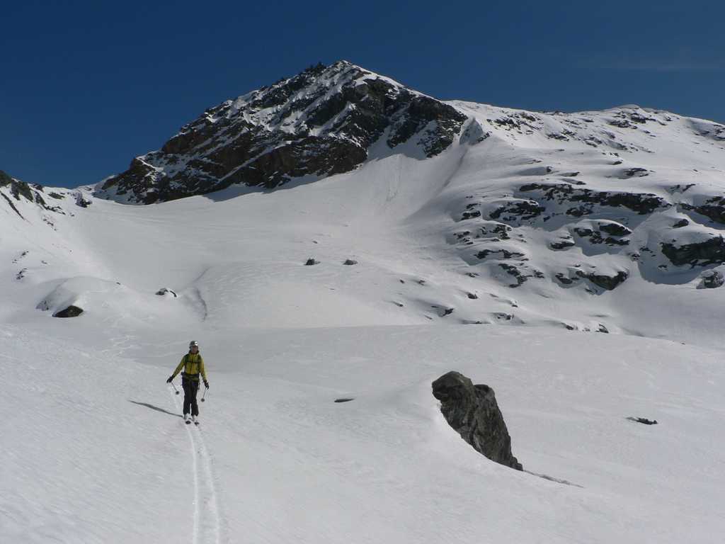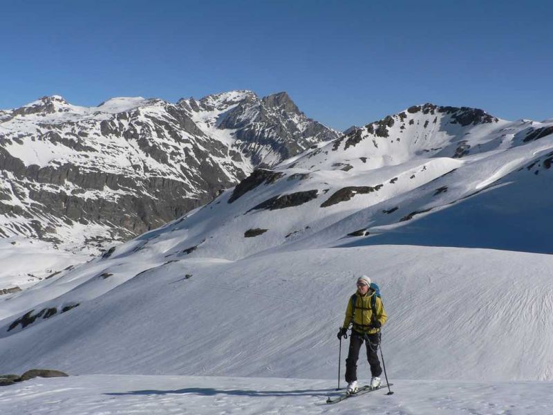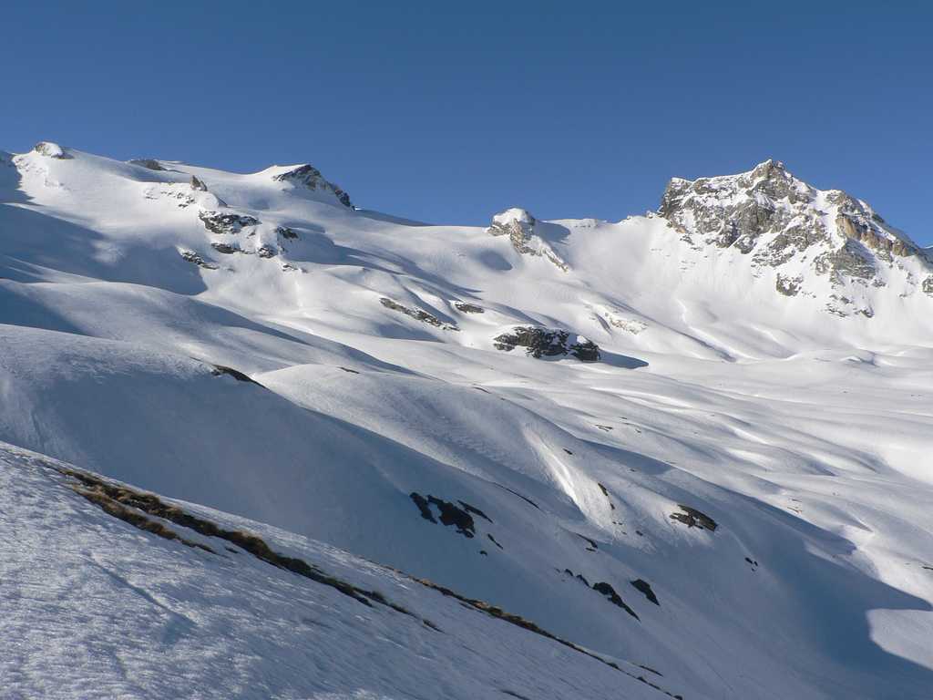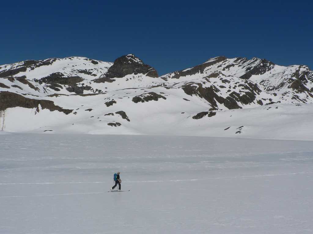Très beau tour sauvage. Les pentes nord du bas du vallon de la Vaudaletta sont raides (40° sur 100m) et en neige dure. Déchaussage vers 2000m pour emprunter sentier d'été en partie déneigé.