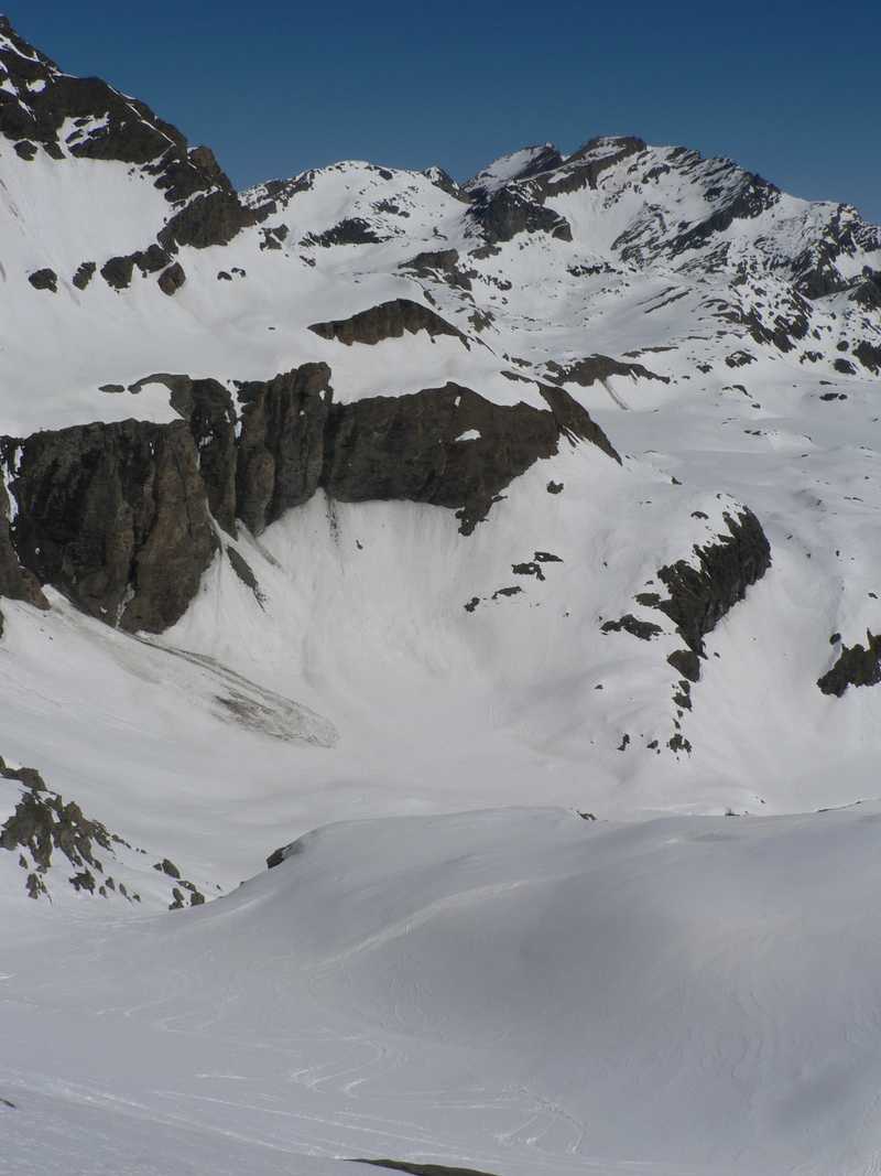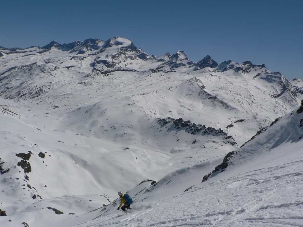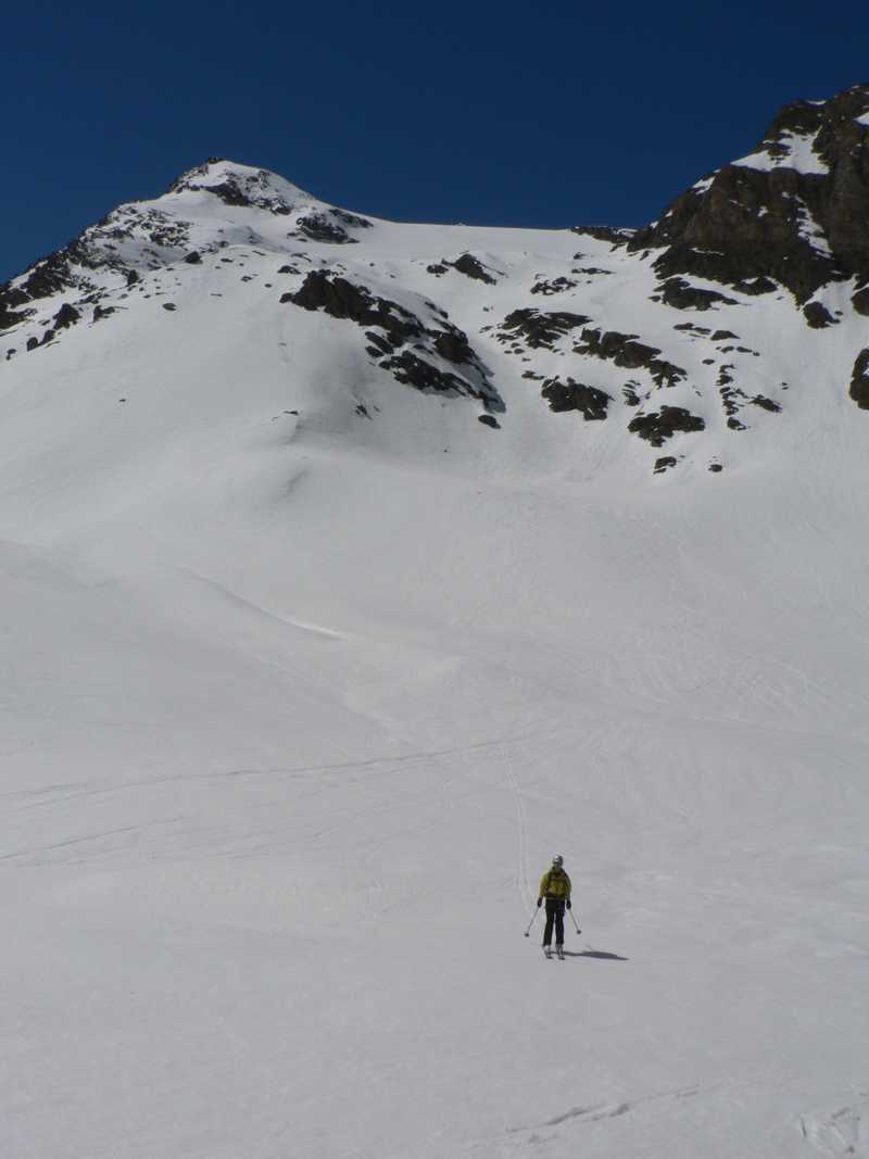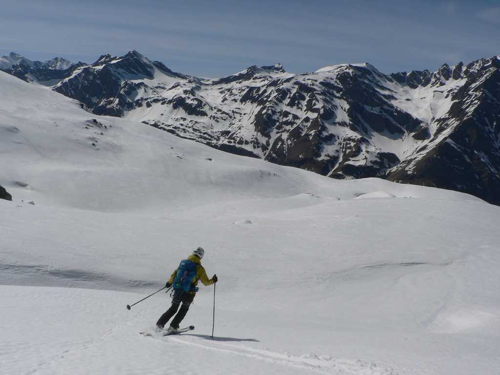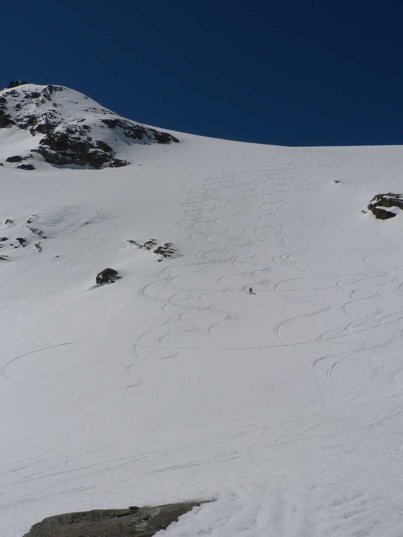 Neige transfo presque tout le parcours. Un peu de vieile poudre sur 100 à 200 m dans les pentes nord sous la Basei. Dans les pentes nord sous le col Leynir elle a par contre virée à la croûte.