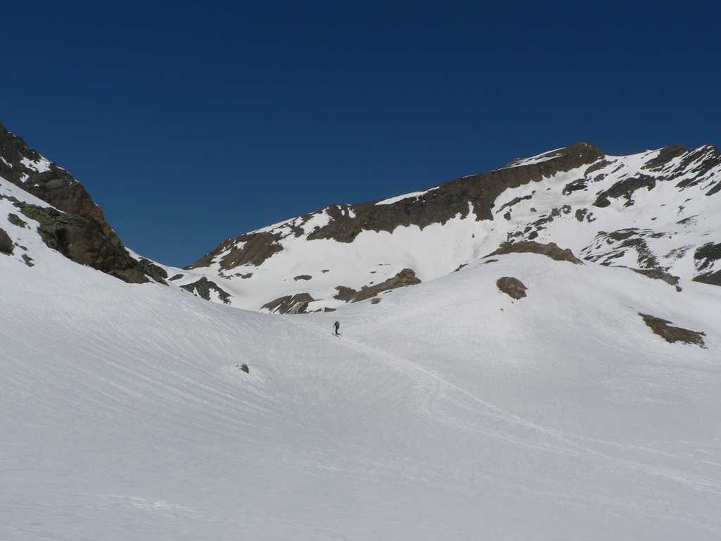 Benevolo > col Basei > épaule est de la punta BAsei (3255m) > torrent Rosset (2550m)> lac Rosset > col Leynir > valon della Vaudaletta > Thumel