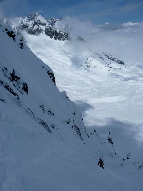 Après une bonne semaine sans pouvoir mettre le nez dehors, on est moins regardant sur la météo, et prêt à saisr le moindre fenêtre. Celle d'hier est restée ouverte juste le temps qu'il fallait, on va pas plaindre. Pour ce qui est de la banane, les 200m du haut sont assez étroits et bien raides ; contrairement à ce que dit le topo c'est bien plus soutenu que le col ouest. Autres impressions [ici->http://lesbertonches.over-blog.com/article-ambiance-andine-50078572.html]