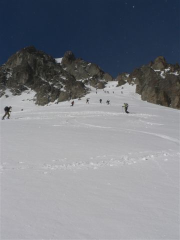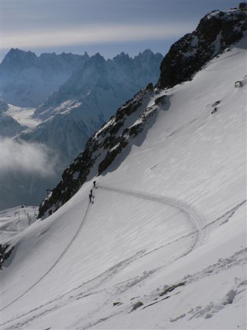 Itinéraire toujours aussi fréquenté, mais beau. 15 euros pour les remontées de la Flégère et 2,70 euros pour le train pour revenir aux Praz. Cotations : marche F, ski 2.3, E2.