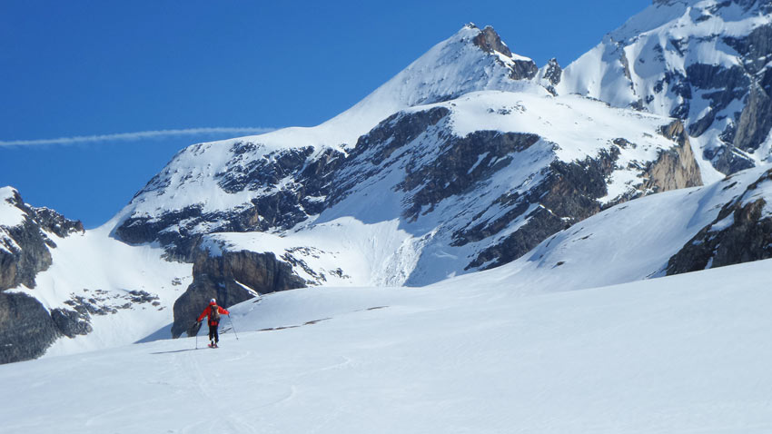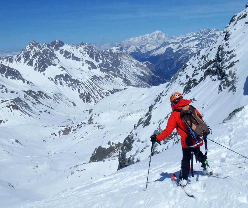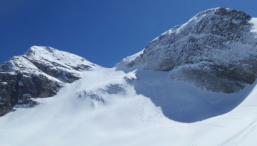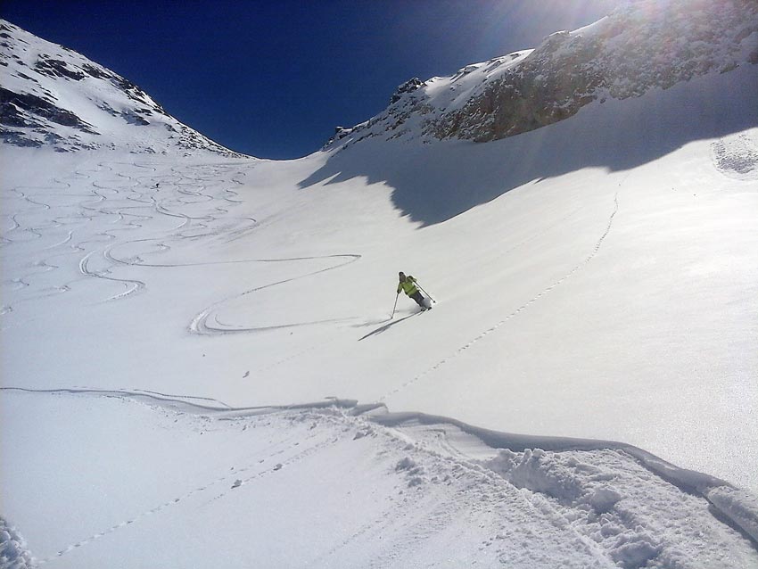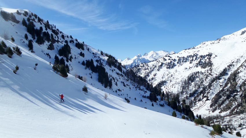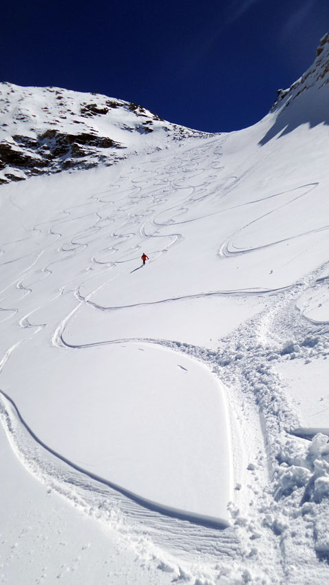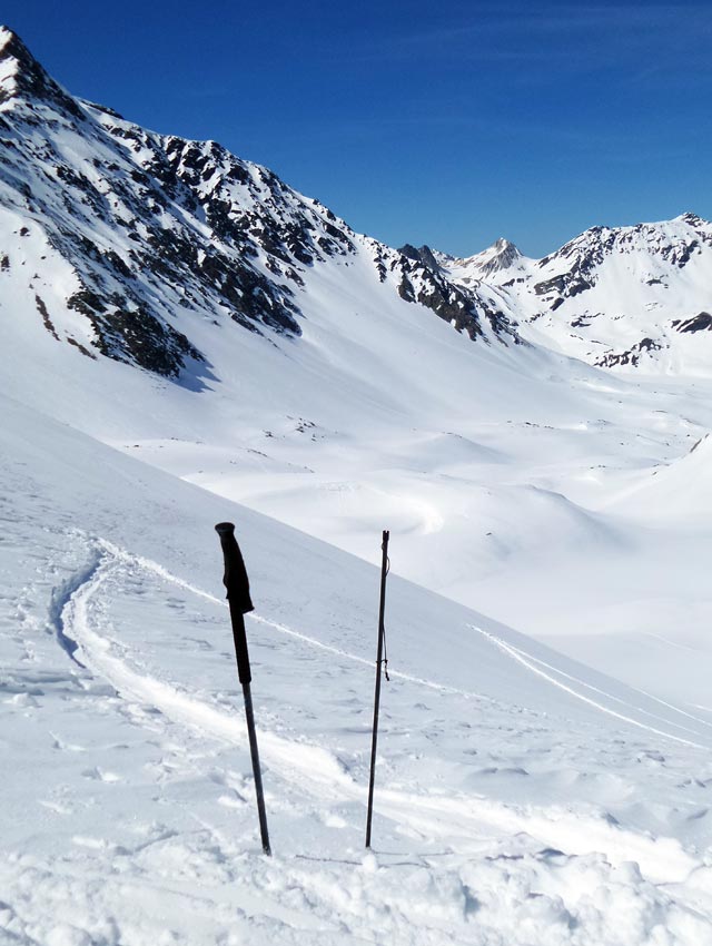excellentes conditions de ski. 3 courts déchaussages sur sentier RD. Pour les jours suivants on doit pouvoir monter la voiture plus haut sur la RG (1900 m). G6 (projet initial) pas en super forme (râclé, boulé).