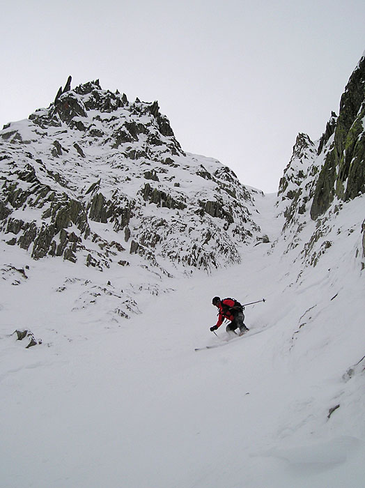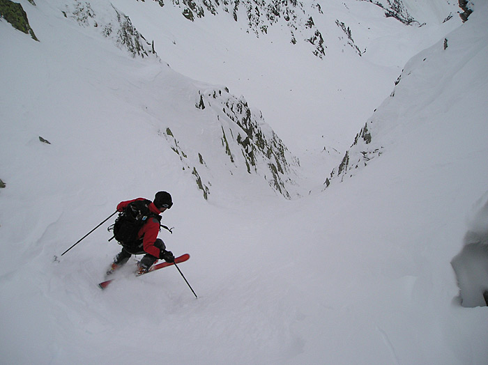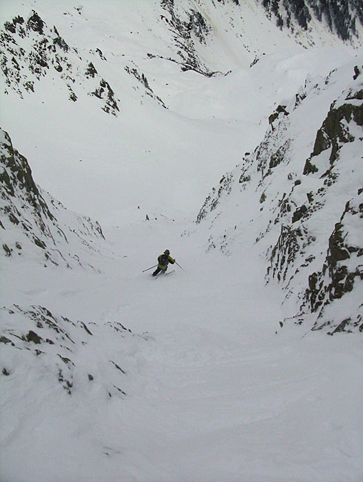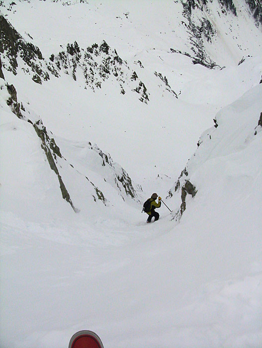Couloir : poudre soufflée tassée dans le haut, un peu plus dense en bas, remplissage moyen.