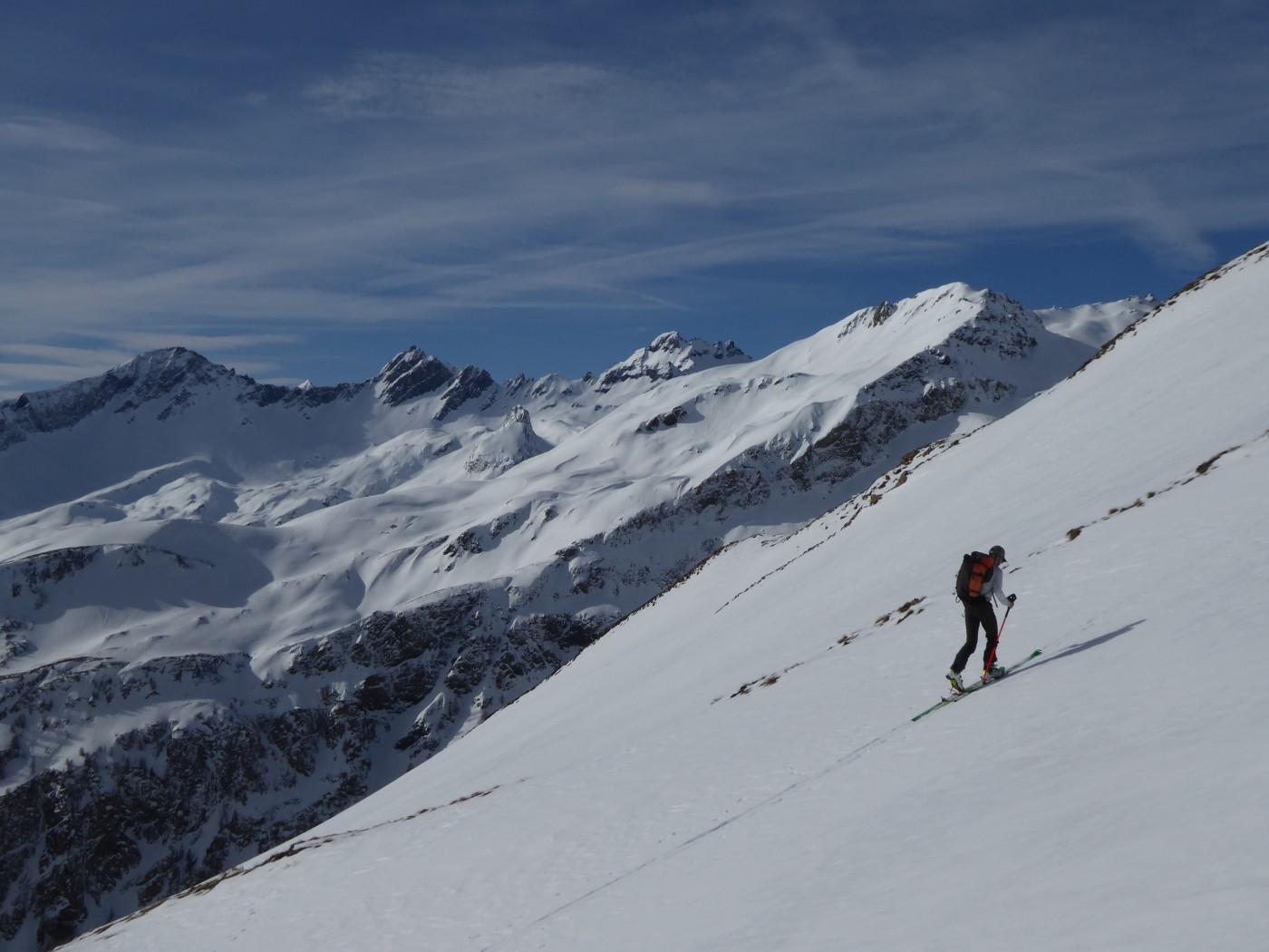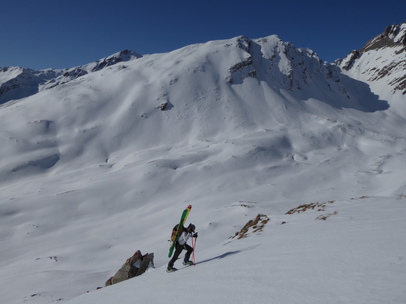H9 puis descente par les pentes SE de la combe Varin. Montée au Belleface Sud par la croupe à gauche de la rampe SO. Descente par la rampe SO (H6).