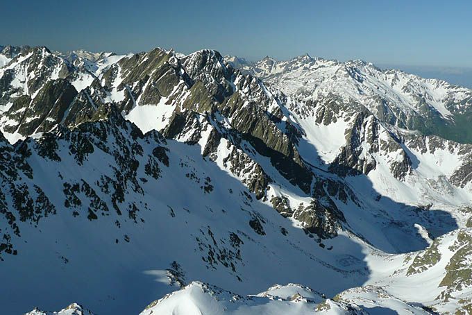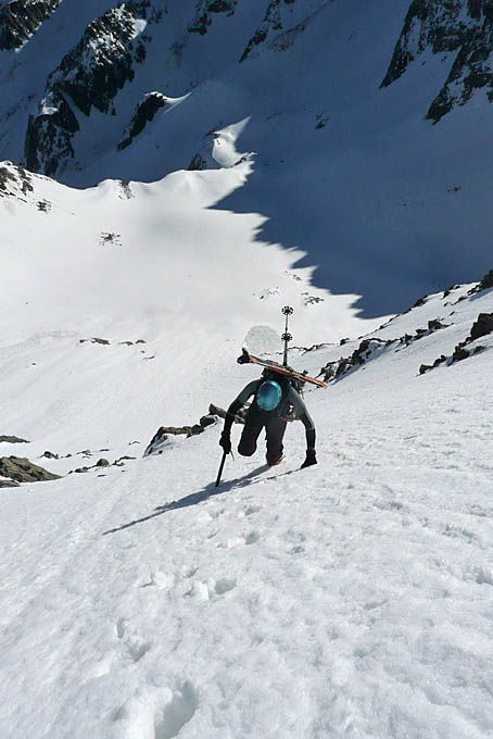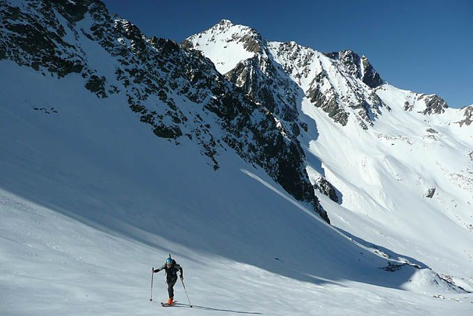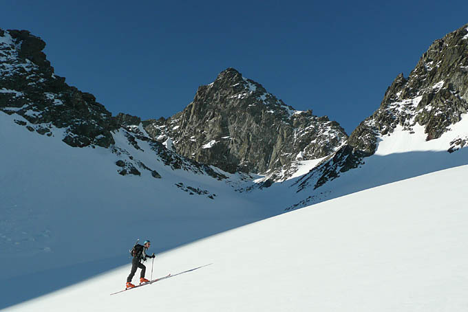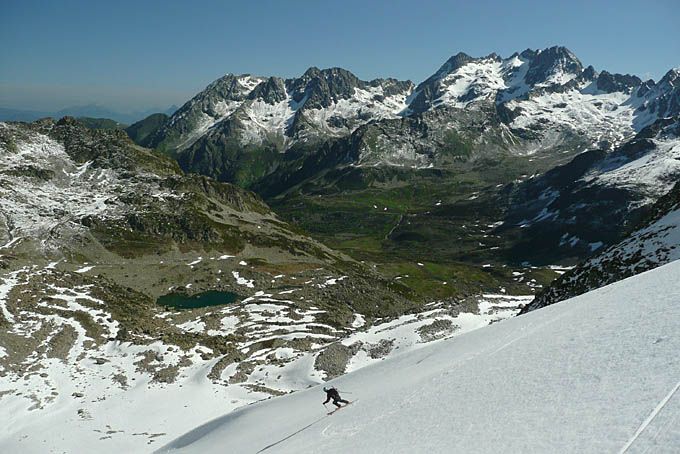 Gleyzin => Comberousse (E7 en A-R jusqu'à 2100 m) puis remontée au col Morétan, descente lac supérieur du Veyton (2060 m), remontée au col du Pertuis, descente E12. environ 2500 m de ski pour moins de 500 m de portage (une petite demie-heure).