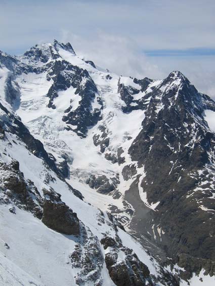 parti dans l'idée de rester à l'abri du vent pour les evechés, je me suis retrouvé en face, car la chaîne galibier-tabor était plus accrochée. Croisé trois personnes qui redescendaient. Le haut était vraiment béton. La poudre se densifiait à mesure, avec le vent de nord-est qui remontait, succédant ce jour à celui qui avait du souffler de l'ouest la veille. Quelques accumulations. Pas de plaques très étendues ce jour, mais à surveiller en plus haute montagne si le vent persiste.