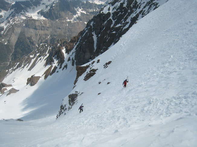 regel faible <2300, pas de dégel sous nuages > 2600. En nord 40°, neige encore sèche sous une croute de regel de qqs cm.