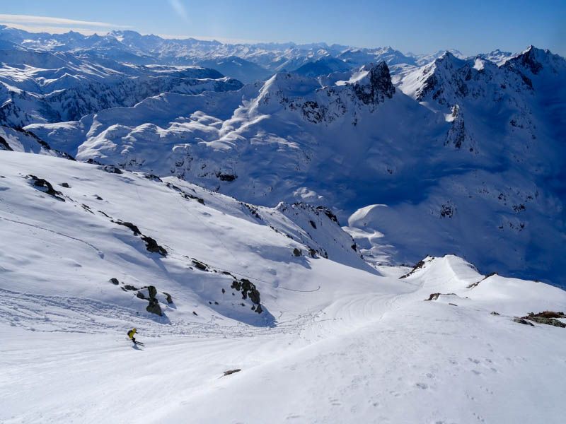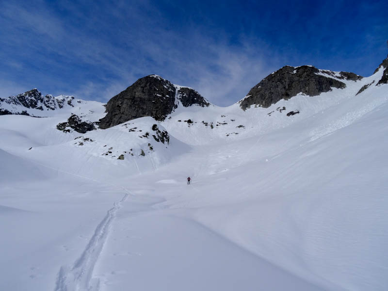 Beau circuit incluant quelques passages d'arête esthétiques mais faciles. plus personne dès qu'on bascule sur le versant des lacs.