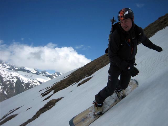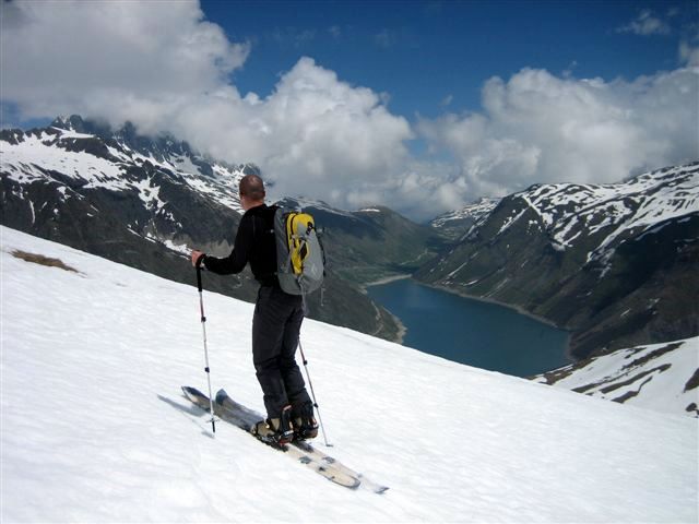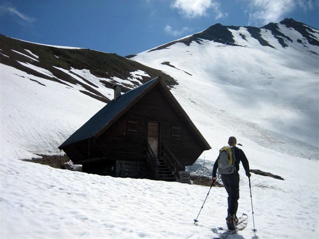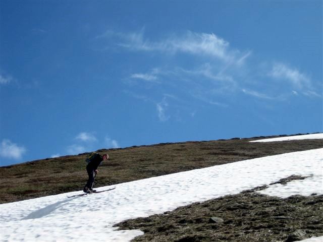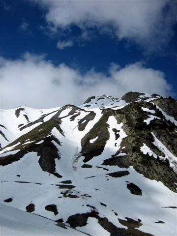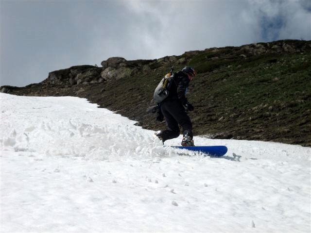 Névé sur tout l'itinéraire, quelques rares zones pourries près des rochers.