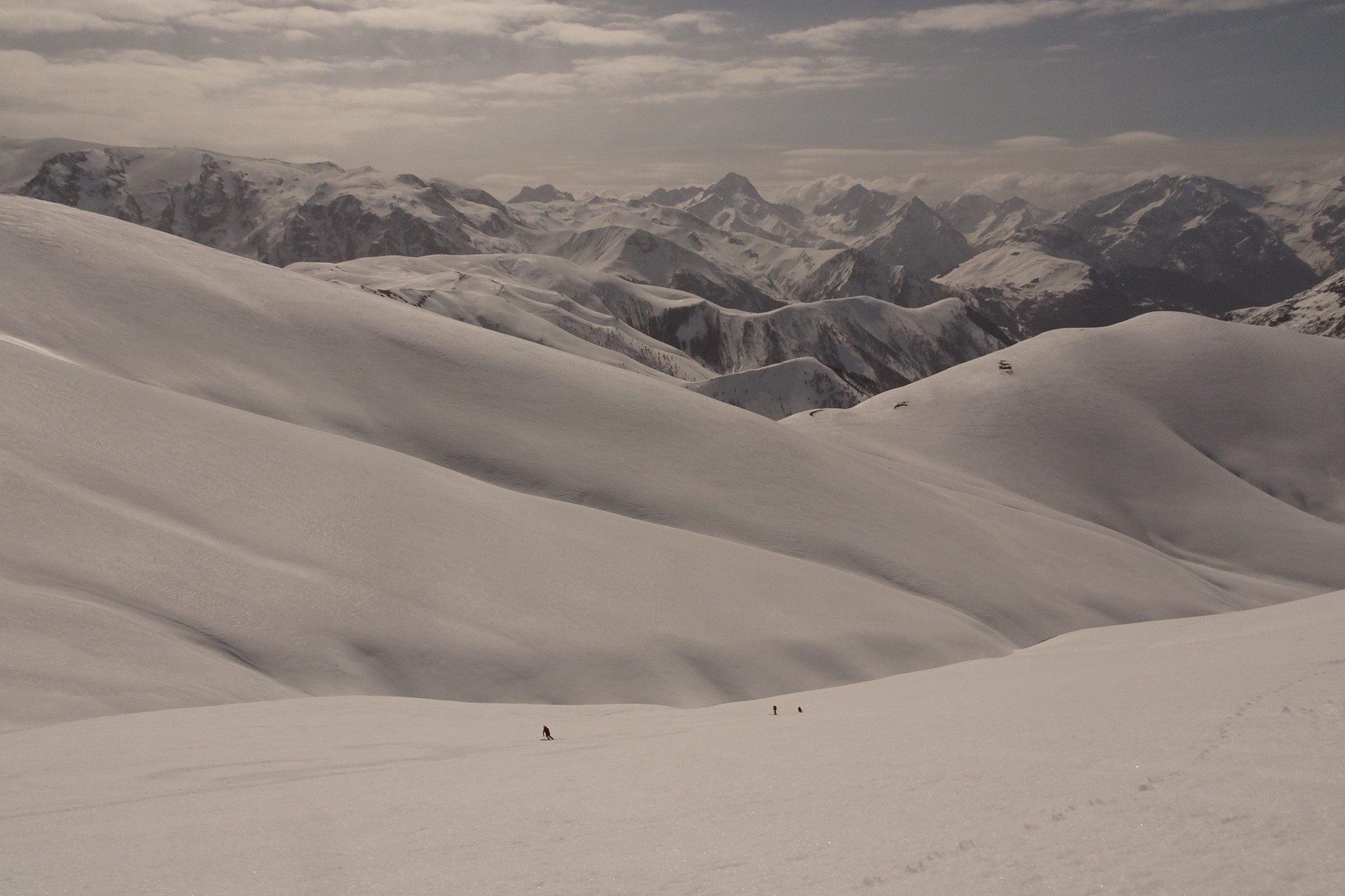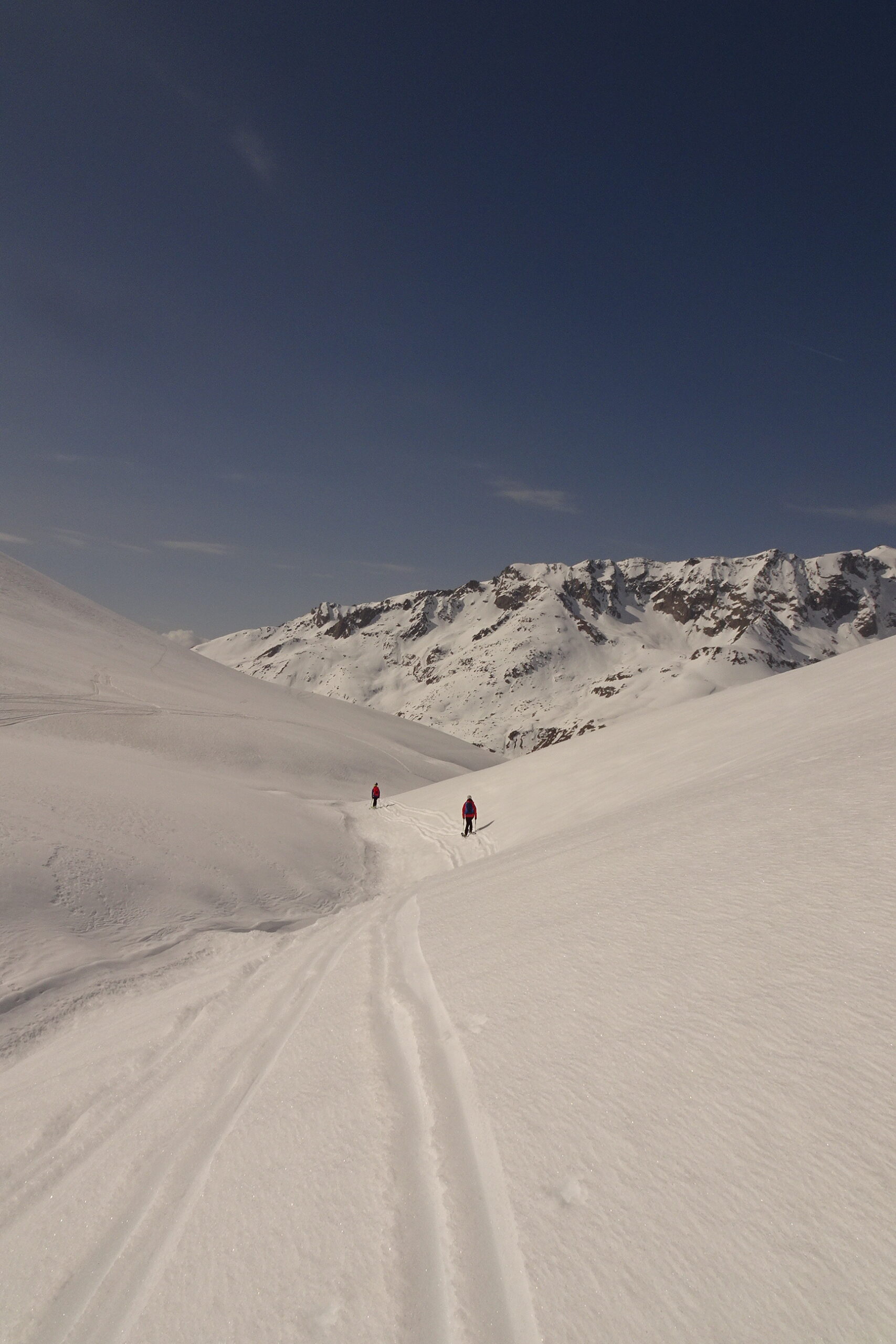 Depuis les granges du Gay, montée à la Quarlie. Descente dans le vallon mort jusque vers 2100m. Montée par la côte Pissette jusqu'au sommet (2584m). Descente sud jusque de nouveau 2100m. Remontée à la Quarlie. Passage à la bosse au-dessus des chalets de Quarlie pour la dernière descente sur le chalet du Cros (rangée de piquet en fer un peu au-dessus du chalet - méfiance). De là, traversée vers la gauche pour rejoindre Péméan puis le parking.