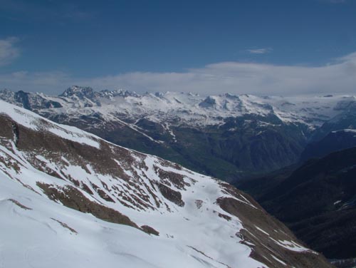 Les dernières précipitations ont ramolli la couche supérieure, provoquant quelques nouvelles coulées sur les versants raides observés en sud-est. Le faible regel s'est fait sentir. On a raccourci nos projets en raison de cela.