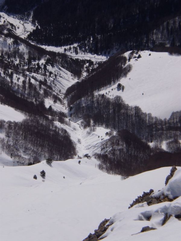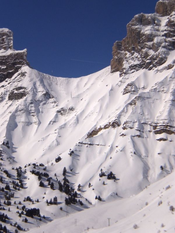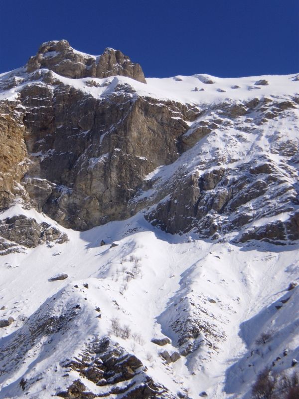 Parti peut-être un peu tard pour avoir la meilleure neige, mais ce n'était encore pas si mal vers 13h. Les pentes sont dans les 30° et ça se redresse un peu dans un bon 35 sur la fin.