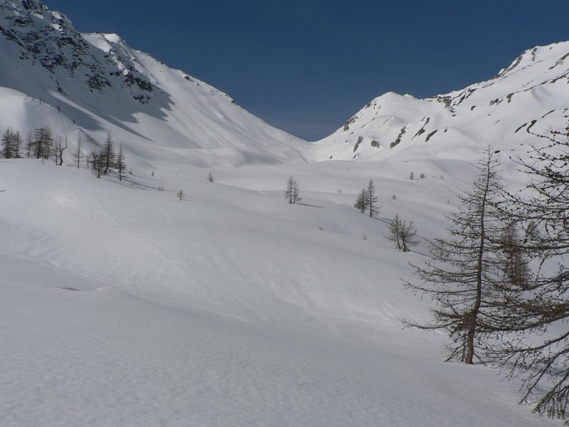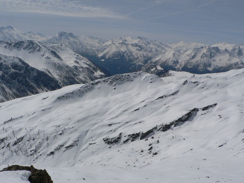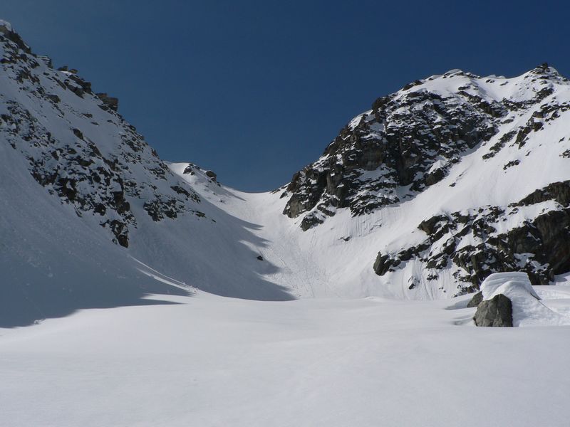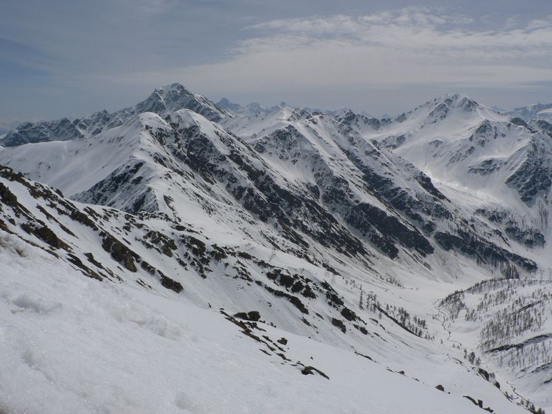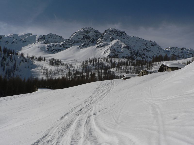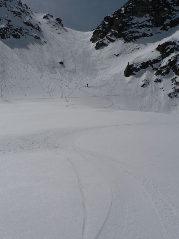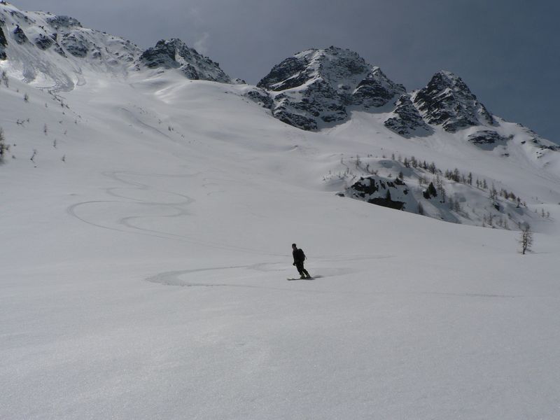 Jolie course sauvage en marge du classique et très sûr col Serena avec de bonnes conditions de ski (poudre un peu lourde) puis transfo. Le couloir nord de la Cresta di Corléans (à droite du col en montant) est tracé.