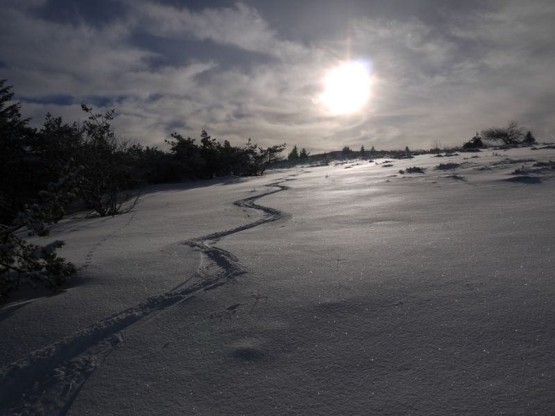 L'enneigement reste suffisant pour se faire plaisir, skis aux pieds, sur les hauteurs du Pilat. Les pentes Ouest et Nord sont même excellentes à descendre. Très étonnant de terminer la randonnée en rejoignant la voiture avec les peaux (On skie plutôt en dessous du parking). Les averses de neige de la veille ont bien amélioré la glisse.Il n'y a aucune logique d'itinéraire mais le plaisir est là malgré tout.Quelques "raquettistes" croisés ce jour.