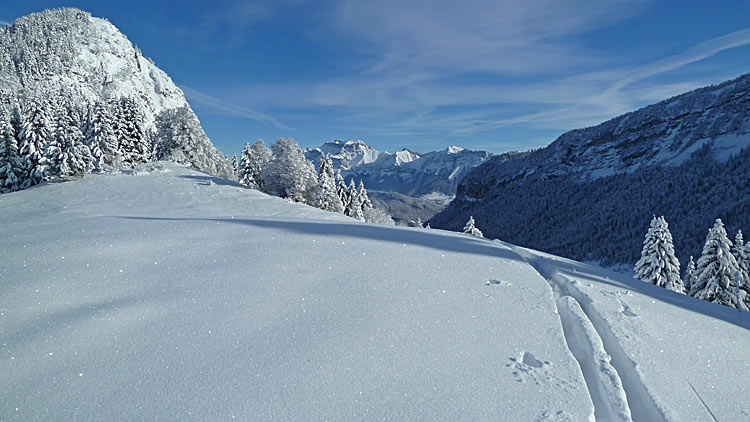 Mont Devant >> Montée forestière coté ouest au Crêt du Char (la 1ère de B12), descente sud-est jusqu'au Reposoir, remontée à la Dent des Portes, arrêt avant la traversée>> Mont Devant