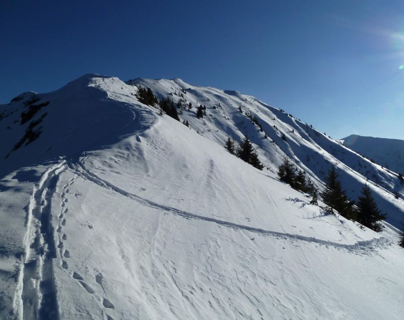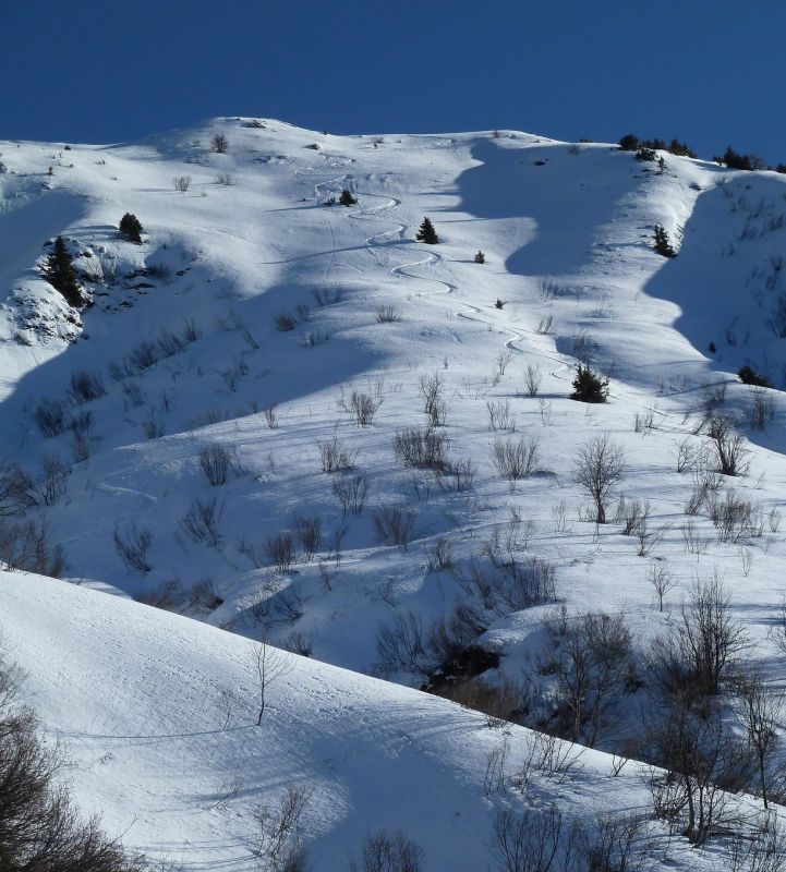Pierre Brune (garé à 1470m en continuant un peu sur la piste boueuse) - col de Cressua - Crêt Massuet - descente ouest jusque 1850m - Crêt Massuet via col de Cressua - couloir NE - remontée Crêt Massuet - descente par Roche Noire. D+/- 1200m.