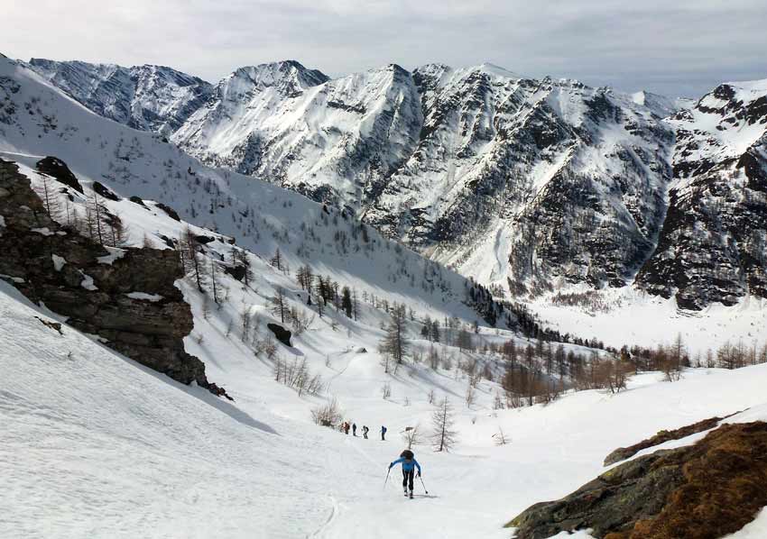 piste jusqu'au plan de Jervis, puis à gauche jusqu'à la crete de Barant par la Mait del Pra. Le plus technique est la descente du chemin de Jervis à Villanova.
