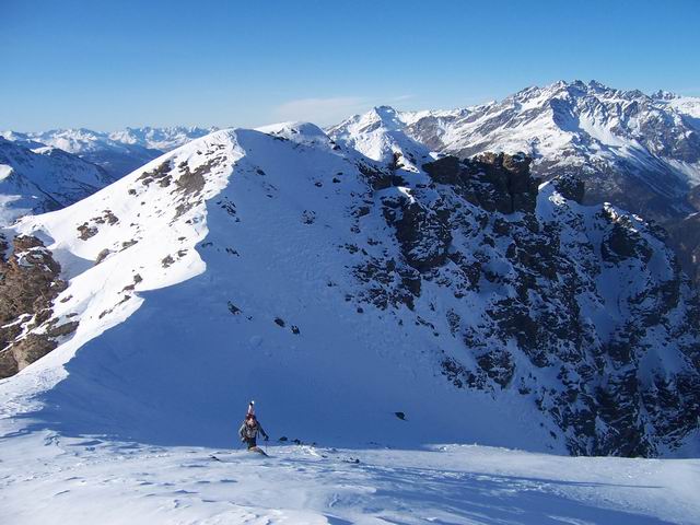 Globalement une bonne sortie, avec de la neige bien au dessus de nos espérance, du grand beau temps, pas de vent et deux beaux couloirs. Le plus expo étant la descente sur les pistes de la Norma, neige béton ! Couloir Oriental, 350m, 4.2/E2, couloir Occidental, 400m, 4.3 / 5.1 / E3 à débattre. D+ : 2040m. Les photos suivent.