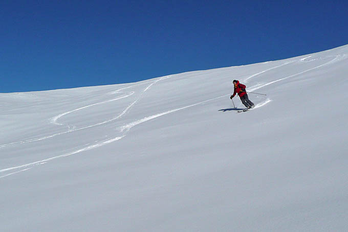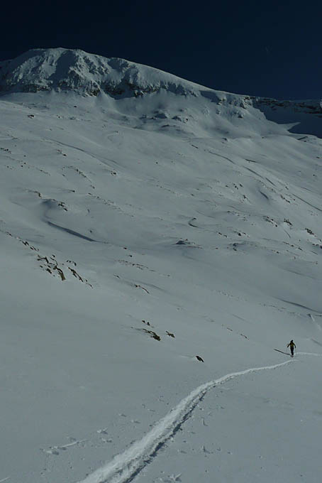 Montée classique, descente sud-ouest sur le lac de Brouffier. Remise des peaux jusque sur la crête puis descente classique.