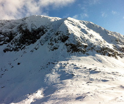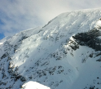 de 2400 à 2100 neige soufflée en général portante. de 2100 à 1800, croutée à humide (SO) ou cartonnée (NO) peu skiante. En forêt, humide pas loin de la transformation
