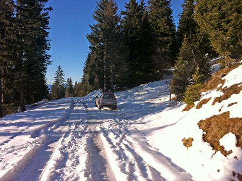 B10. descente jusqu'au park 1600 par la forêt, limite : la route (tracée raquette) eut été préférable