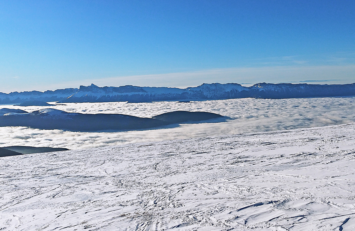 Je pensais devoir boucler sur le Guiliman pour avoir de la transfo mais les Salières étaient très bonnes. Petite poudre aussi en forêt. Et le plateau pour une fois en neige douce.Les quelques plaques glacées en RG s'évitent facilement.