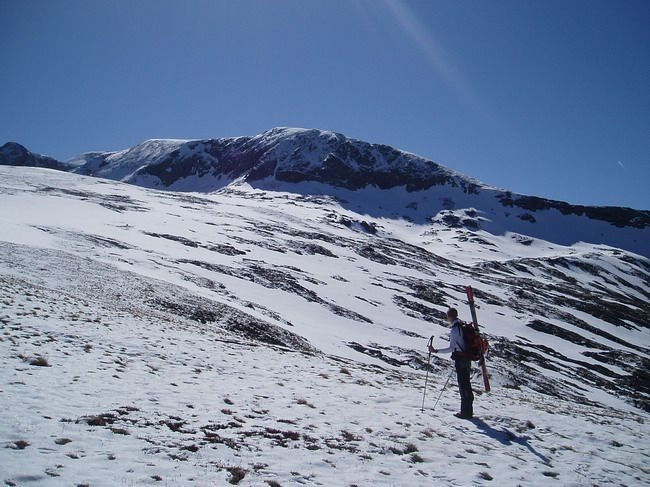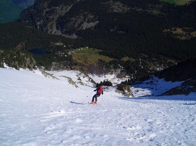 Encore une opération basket/ski rapide, bien rentable et bien agréable. On part tard, on monte tranquillement et facilement par la voie normale. Ensuite descente agréable en versant nord à quelques minutes des chalets. Coté lac Fourchu la neige a l'air toute proche aussi.