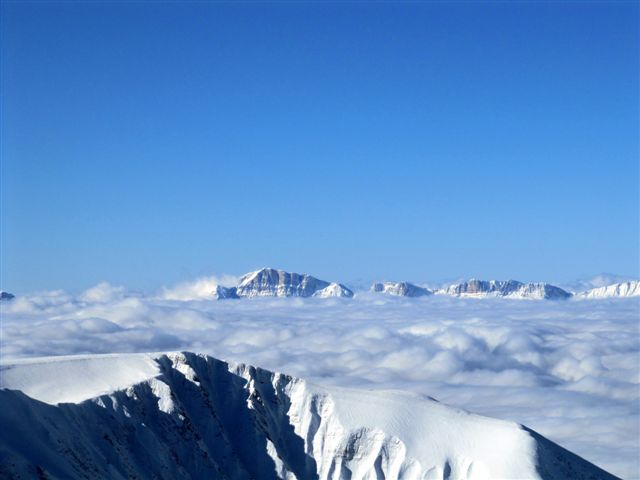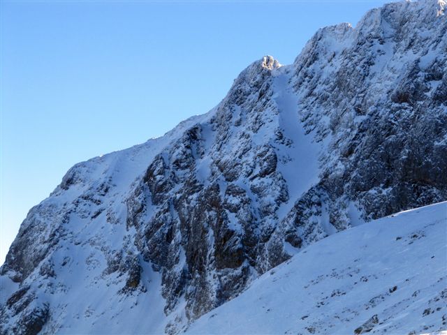 Partis sans grosse conviction mais sans se fermer d'option dans le secteur, le travail du vent au niveau du Pas de la Mine ou du couloir de la Croix Pinelli nous a dissuadé de poursuivre plus loin. Quoiqu'il en soit, cette descente est toujours très agréable en grosse neige. Beaucoup de monde croisé en descendant...