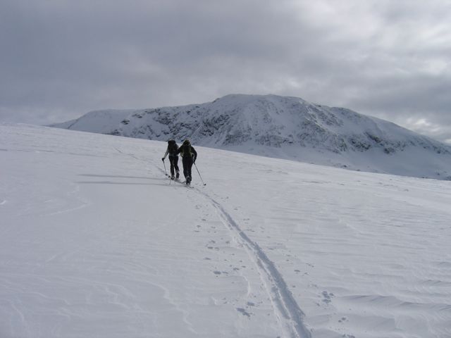Bon, ben la météo s'est encore bien plantée... Il y a pas mal de neige sur l'itinéraire, mais sans véritable sous couche, et le vent (et le soleil ?) a commencé à travailler la neige, qui n'est plus si légère que ça.