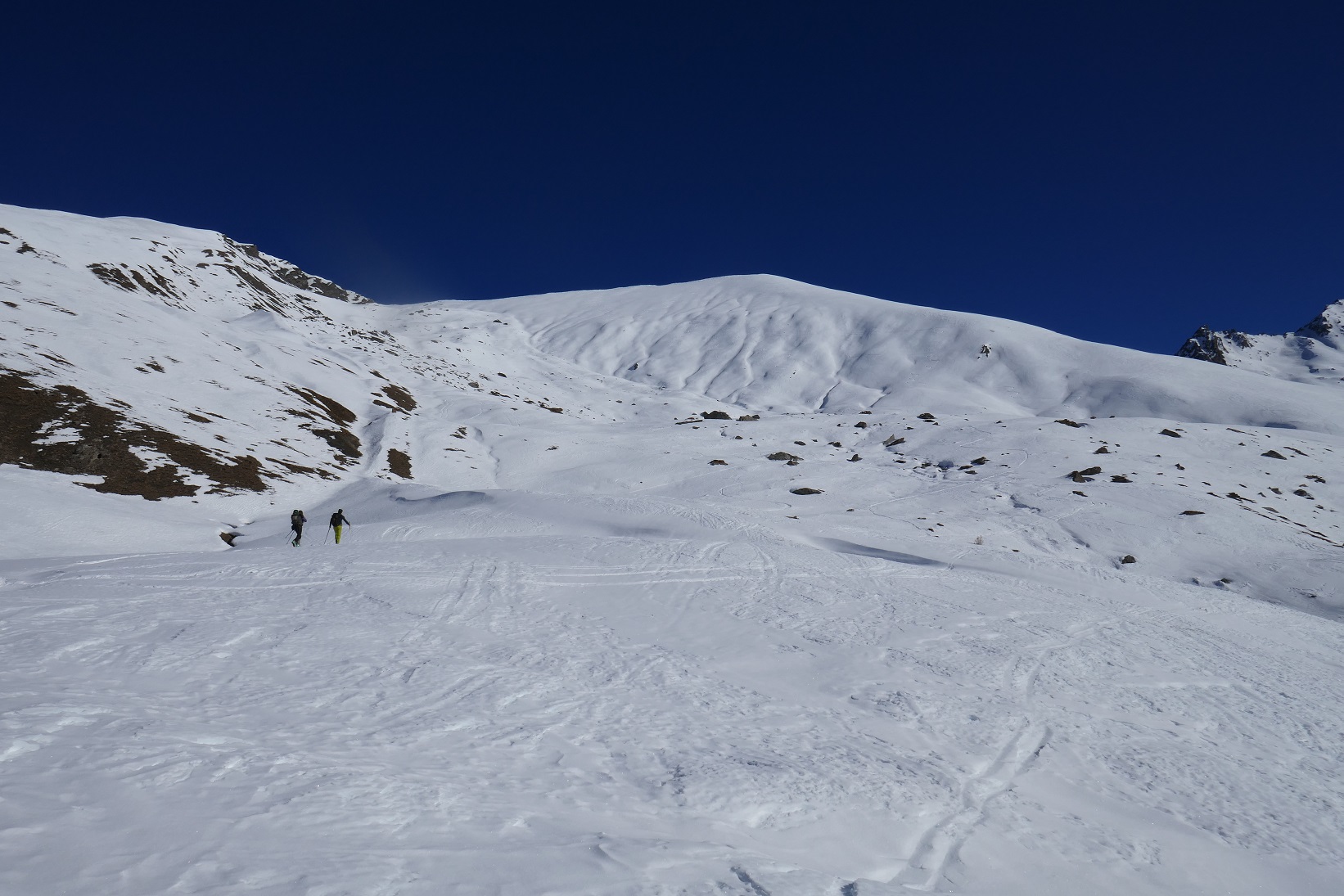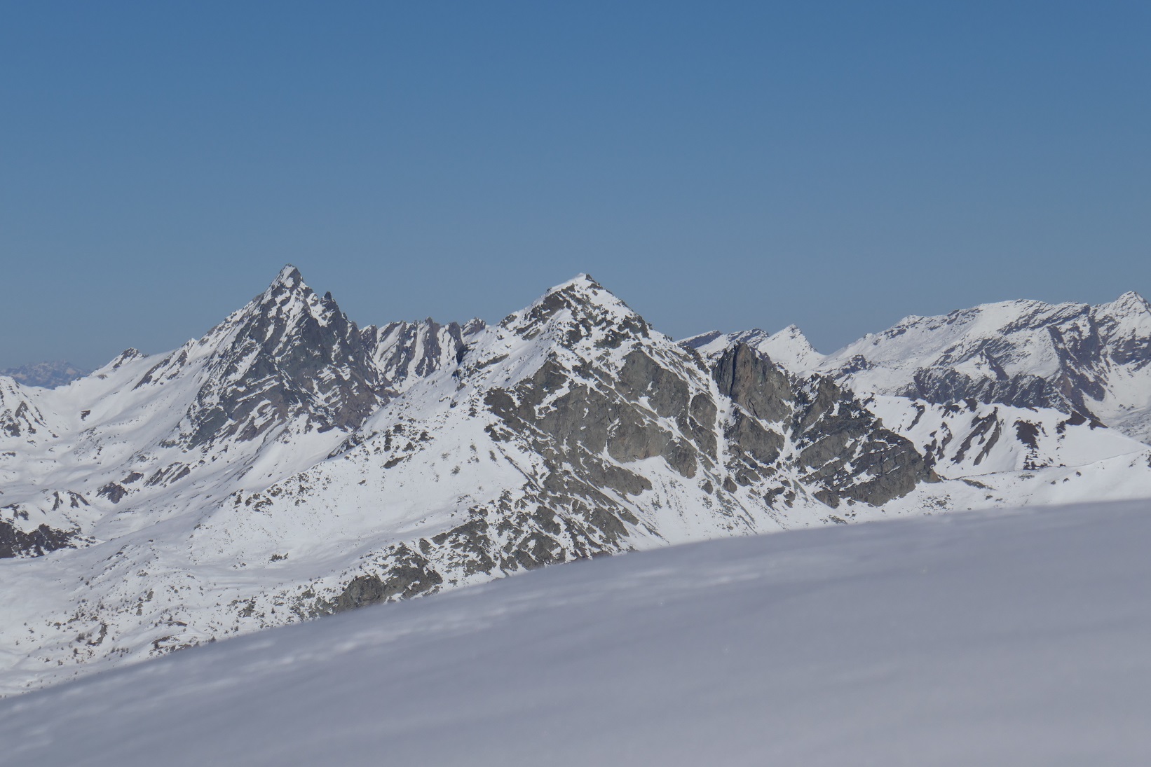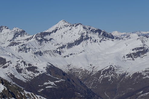 Secteur toujours aussi beau même avec un déficit de neige aussi visible dans les parties basses qu’en haute altitude avec le Viso qui est noir. Le triangle reste en glace.