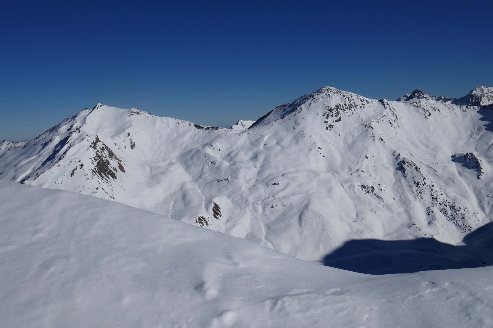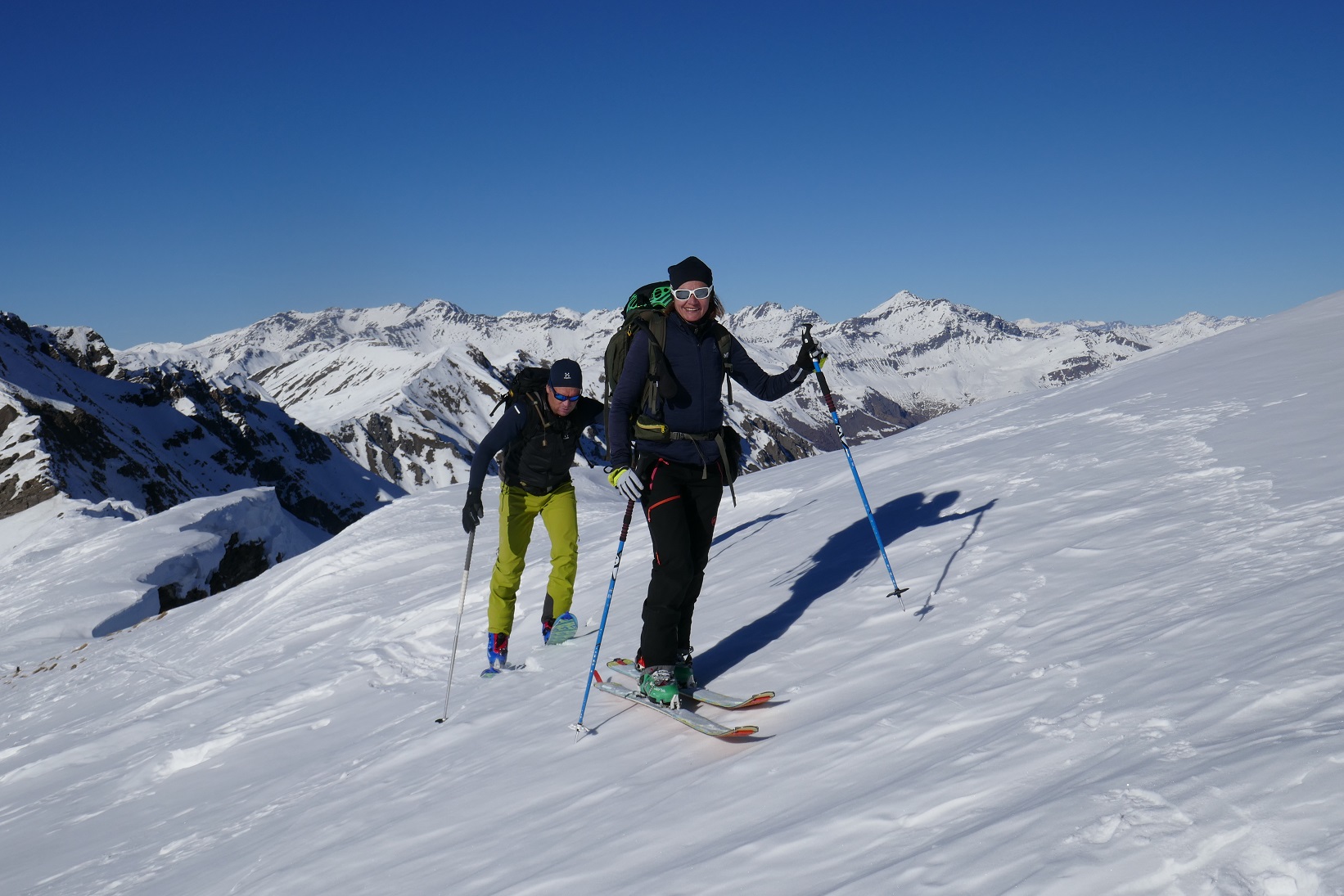 Que des « vieilles » neiges avec des évolutions variées : crêtes soufflées, pentes nord au dessus de 2400 des restes de poudres et toutes les variantes avant la croute, pentes inférieures en peau de panthère avec de l’herbe sur les pentes sud et dela neige gelée avec beaucoup de relief. Malgré tout en ouvrant les yeux on déchausse au pont de Lariane.