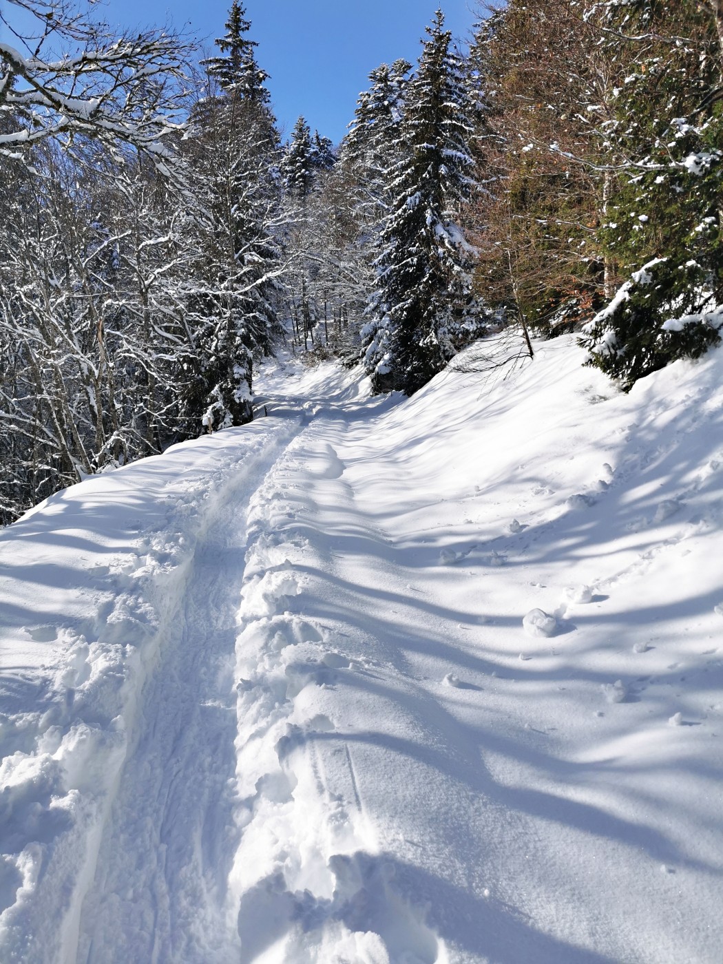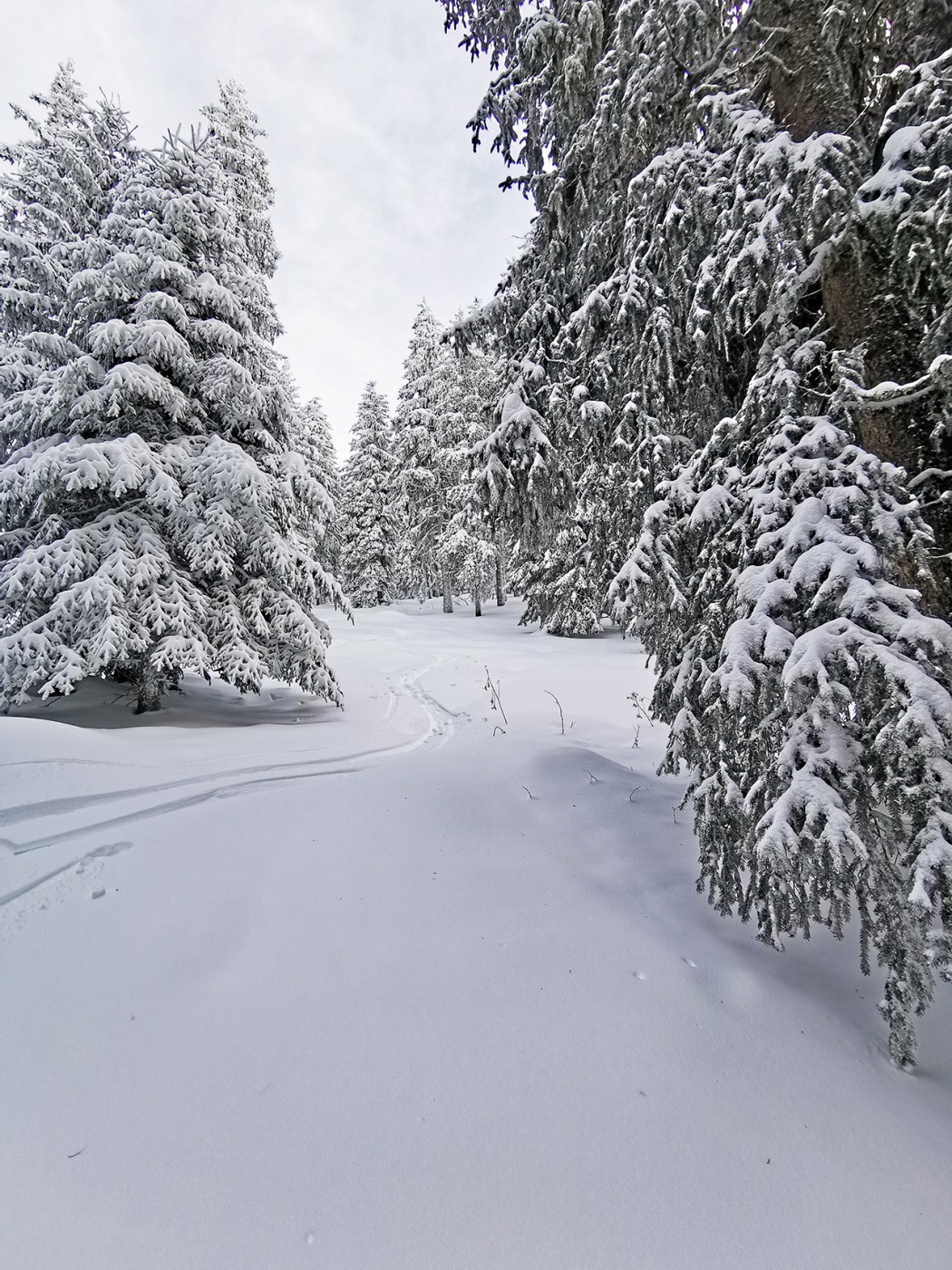Parfait à la descente même en peu raide mais enfoncement parfois important à la montée (ouest). Ne voyant aucune trace sur le versant ouest j'avais anticipé une remontée dans la trace de descente faite en conséquence. Mais l'envie de la boucle par le Truc l'a emporté.