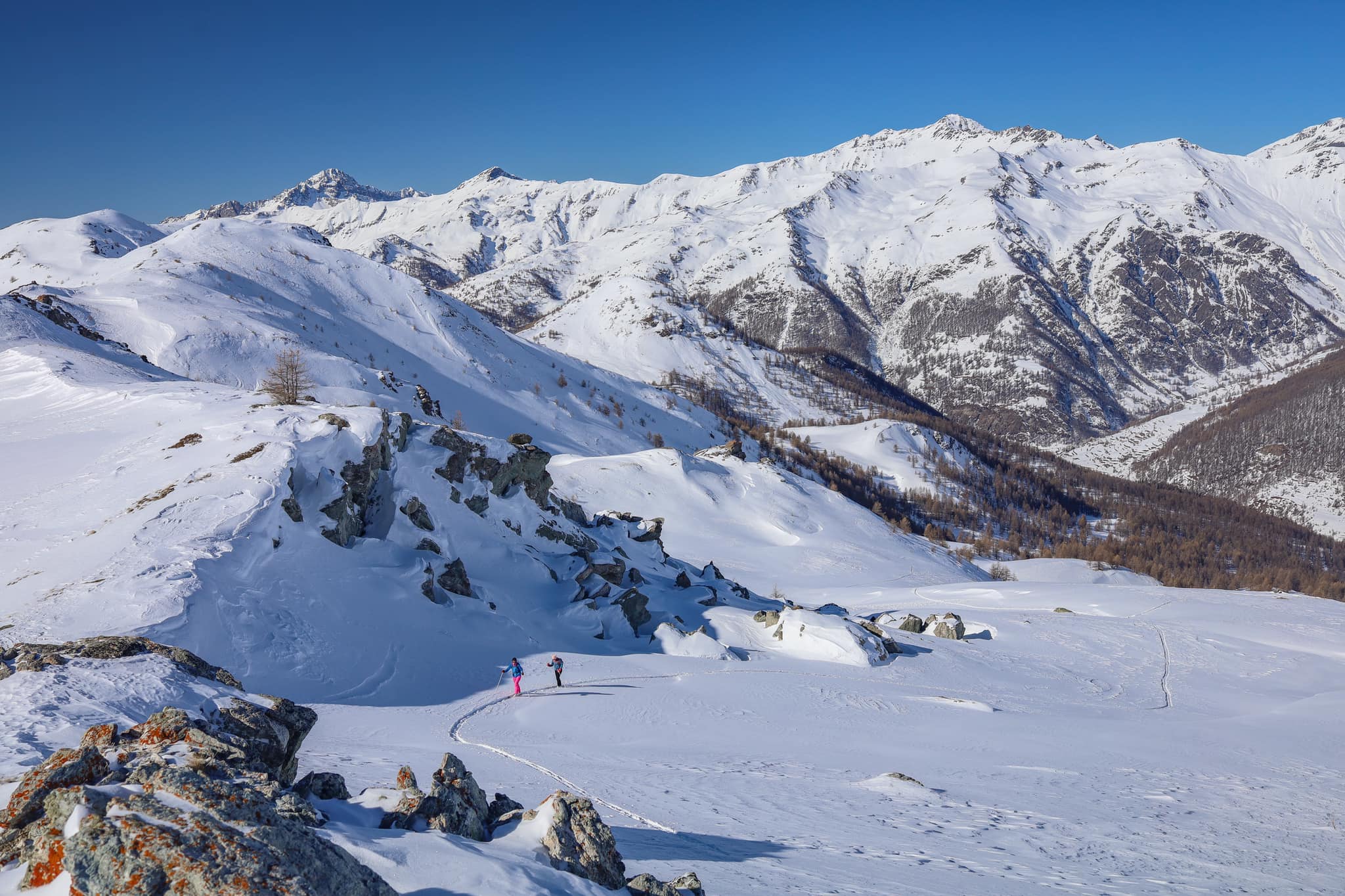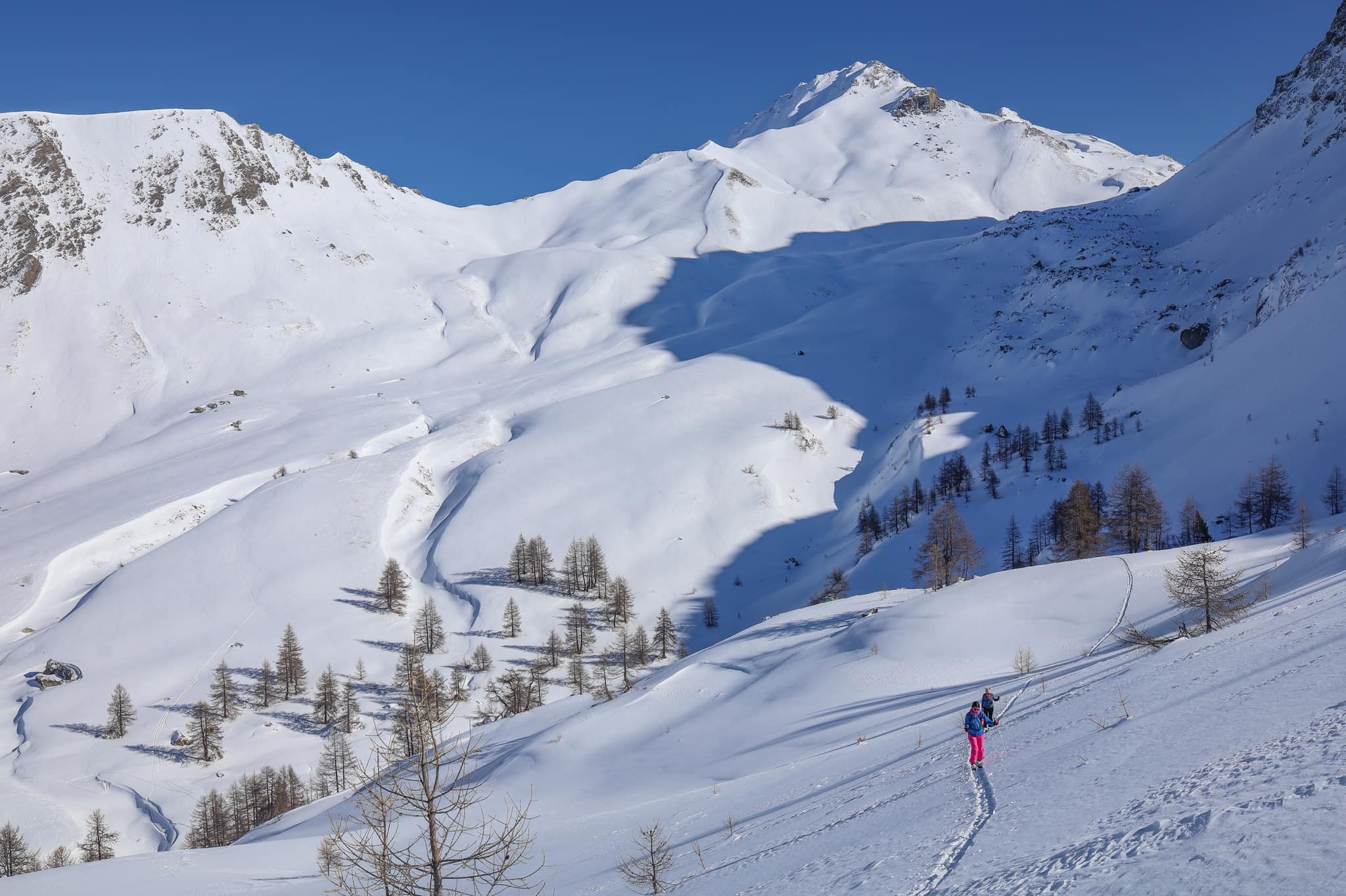 Comme D14 jusque vers 2200 m puis pentes plein nord jusqu'à la crête. On peut s'arrêter partout entre 2550 et 2700 m sur cette crête.