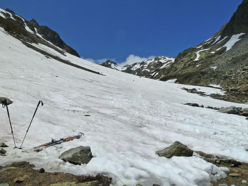 Départ du col du Glandon, une petite demi-heure de portage puis chaussage à 2050 m, ce qui devrait durer encore un moment.