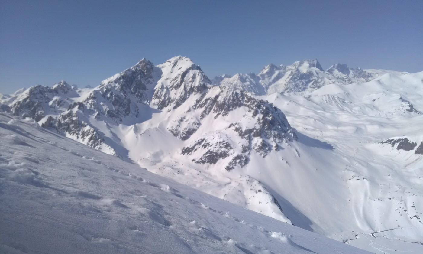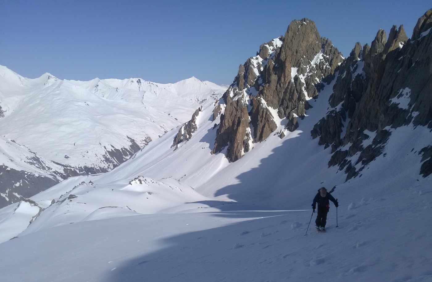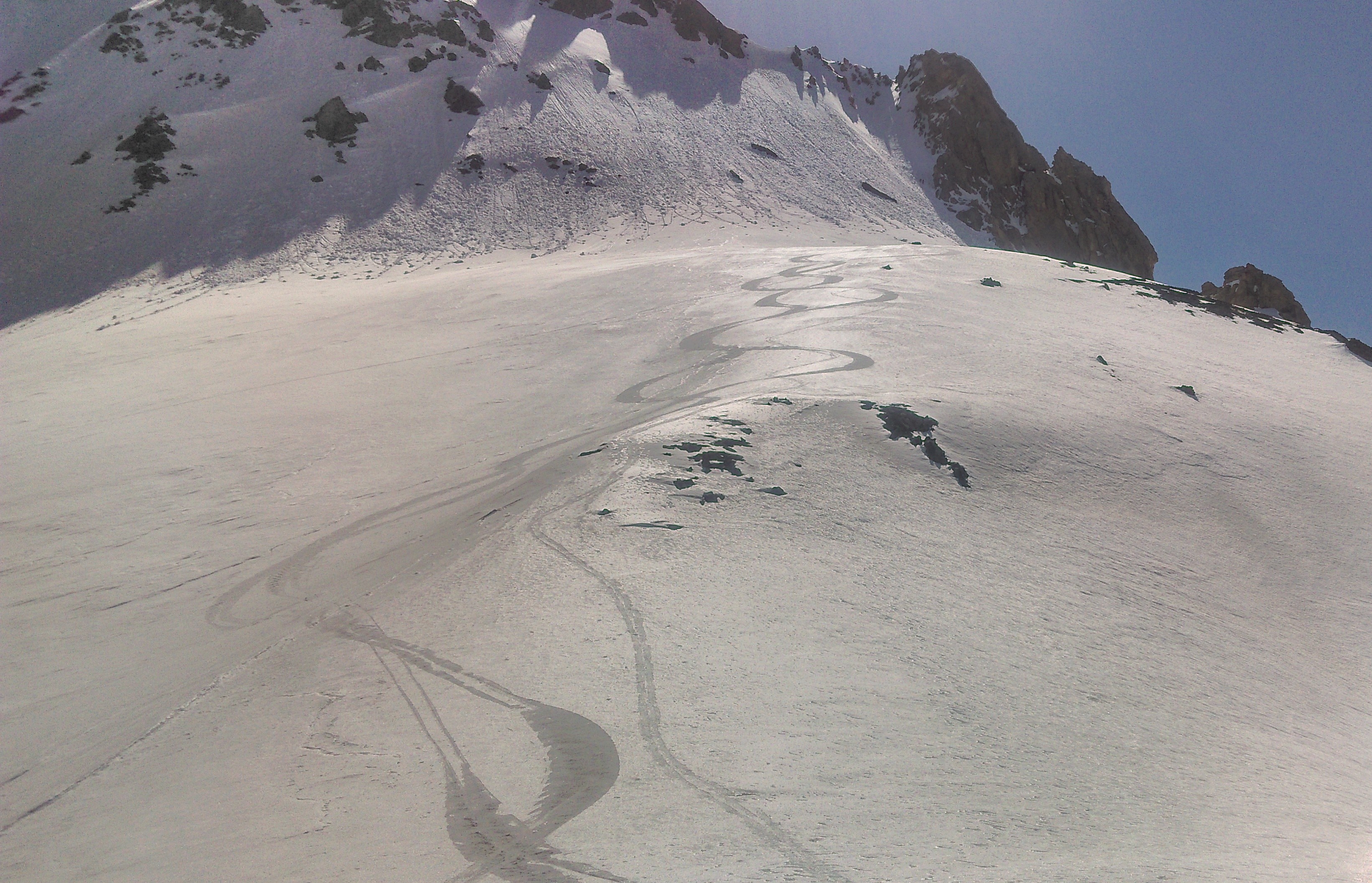 Bonnenuit, Pylone 1955, le près du Ban, Pichard, combe sous les Rateaux. Stop vers 2880. la sortie sur la crête est difficile.