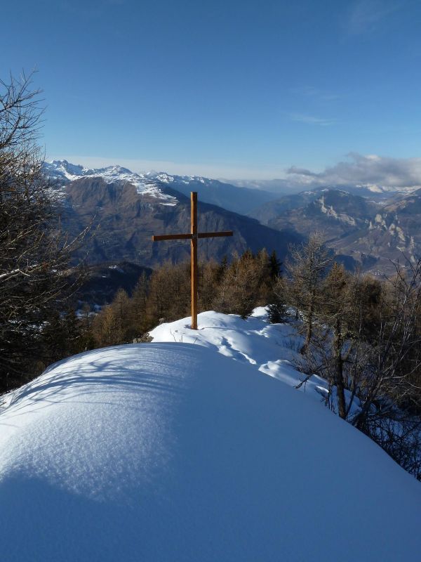 Promontoire de choix de moyenne maurienne, face à la croix des Têtes, les paysages contemplés sont une tentation à s'attarder jusqu'à l'extinction des feux.