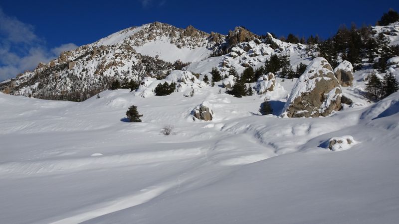 Ski excellent. Les conditions se sont bien améliorées avec le grand froid et de nouvelles petites chutes de neige. Il y a deux jours sur Fouran, où la neige est beaucoup plus abondante, le ski était excellent jusqu'à 2000m mais en dessous la croûte non portante rendait la descente désagréable. Aujourd'hui tout était rentré dans "l'ordre".