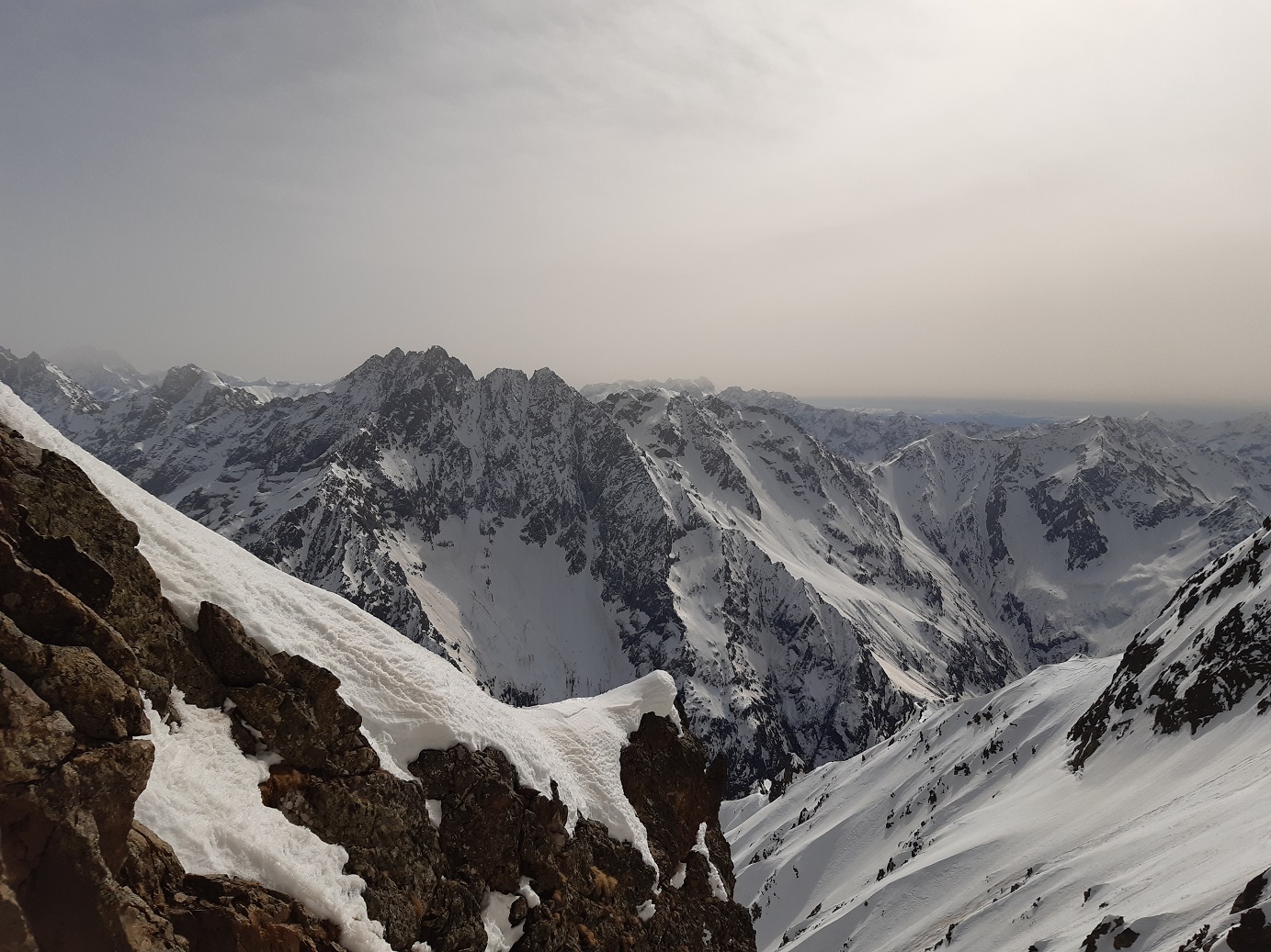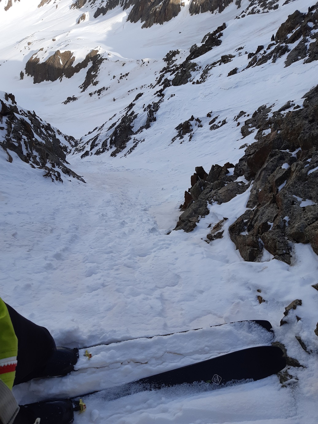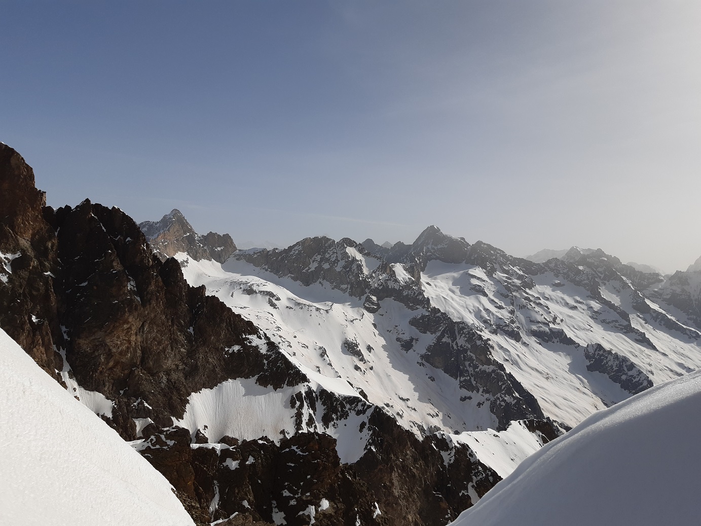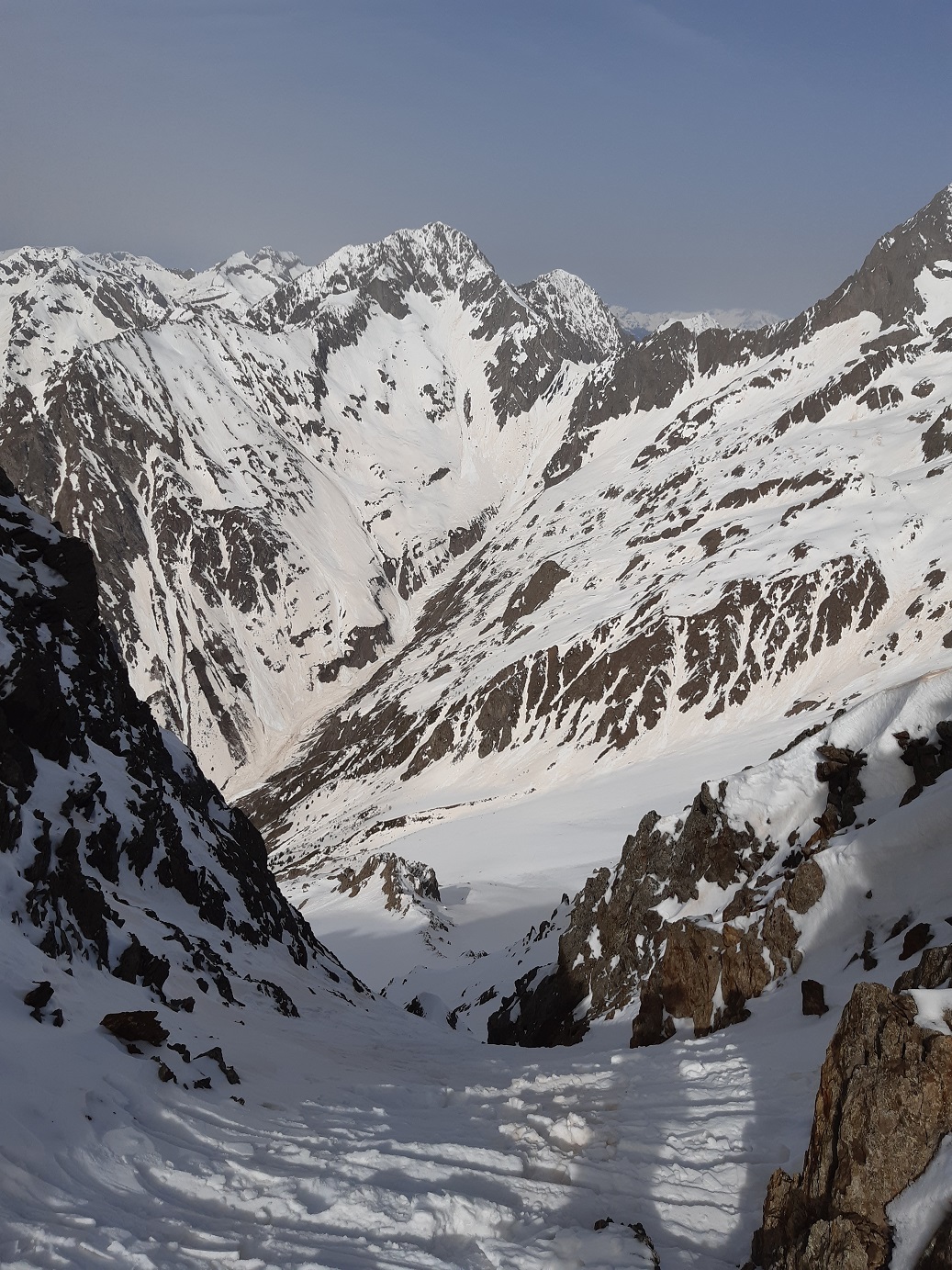 C'est un joli empilement de couloir. Le couloir N de la crête des Marmes est une jolie petit couenne assez étroite en haut qui ne se ski pas dans les 20 derniers mètres (5.1/5.2? J'ai plus l'habitude!). Il faut sortir par un petit pas en glace et un peu de cailloux. Le couloir NW de la Brêche est lui très skiant, large sans être très raide avec une belle ambiance. Bref c'est dans les pentes > 35° où le ski était le meilleur en N dans ce secteur