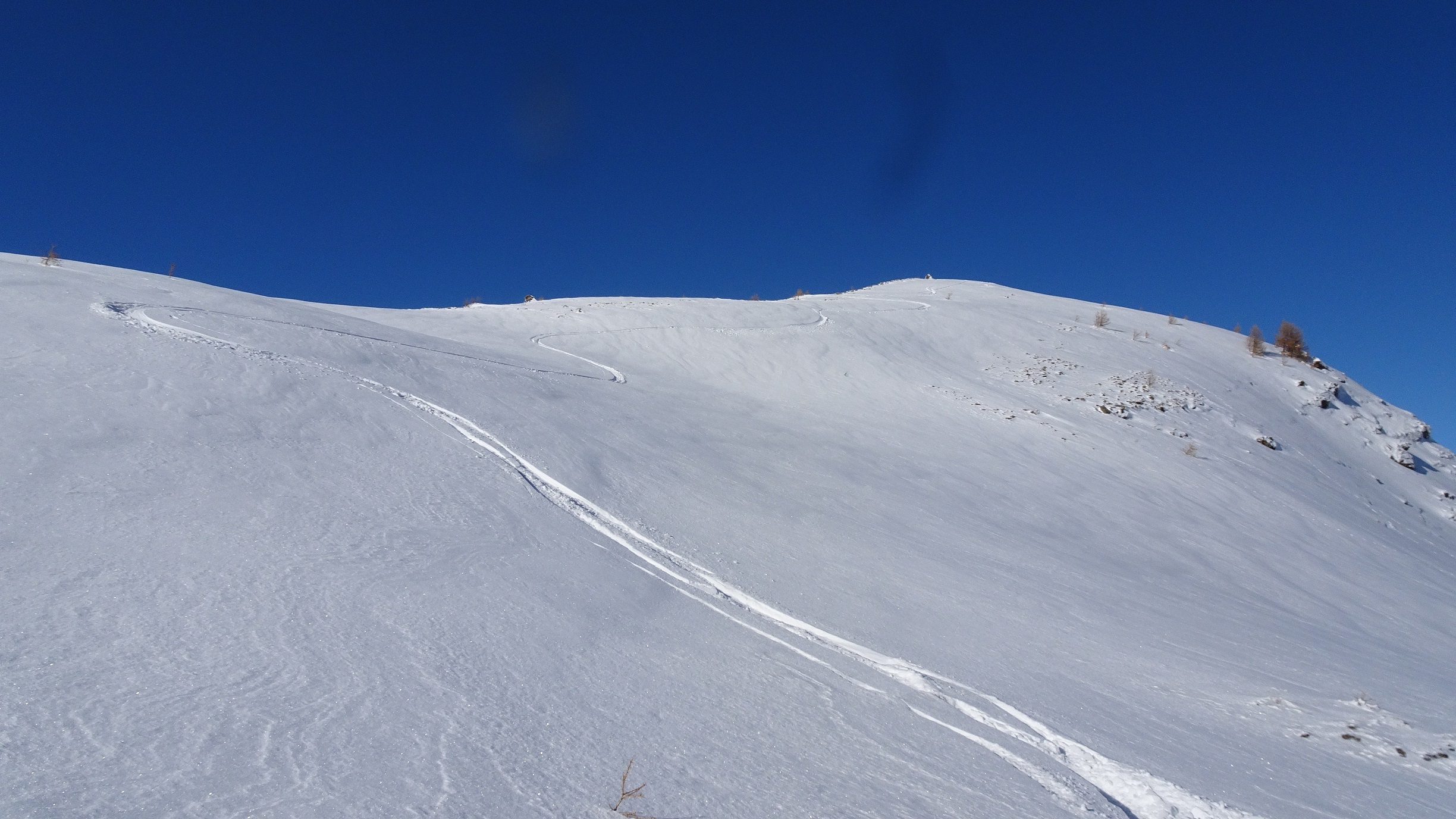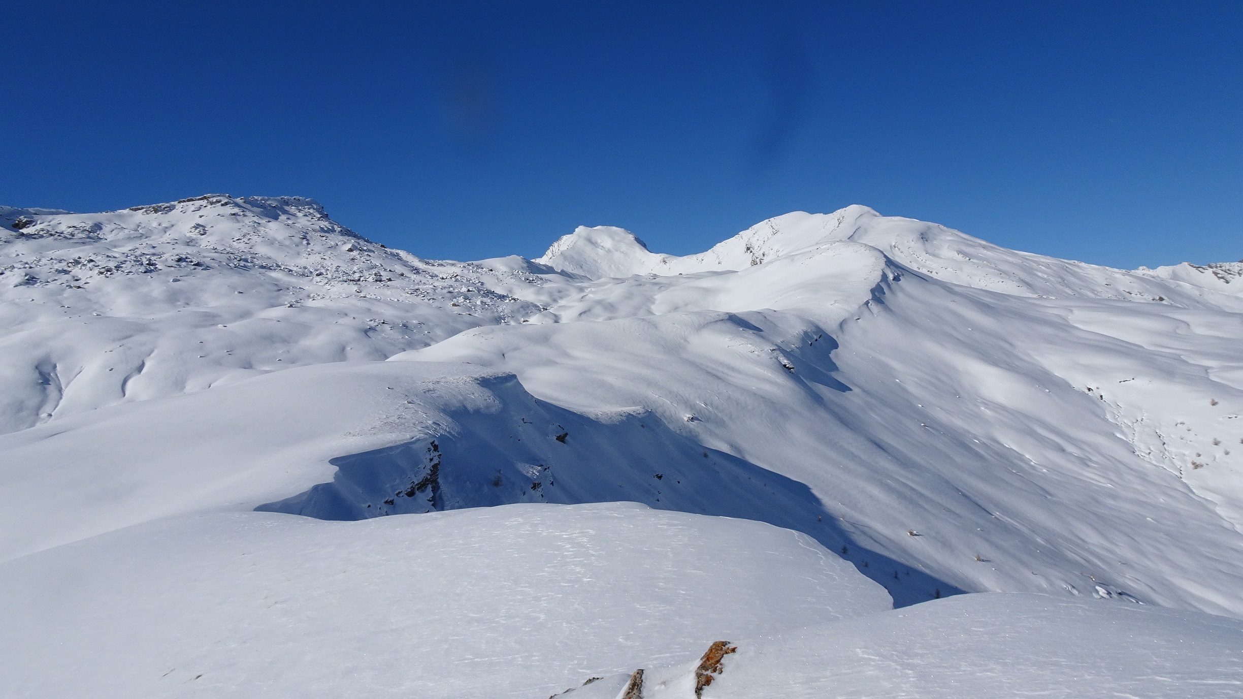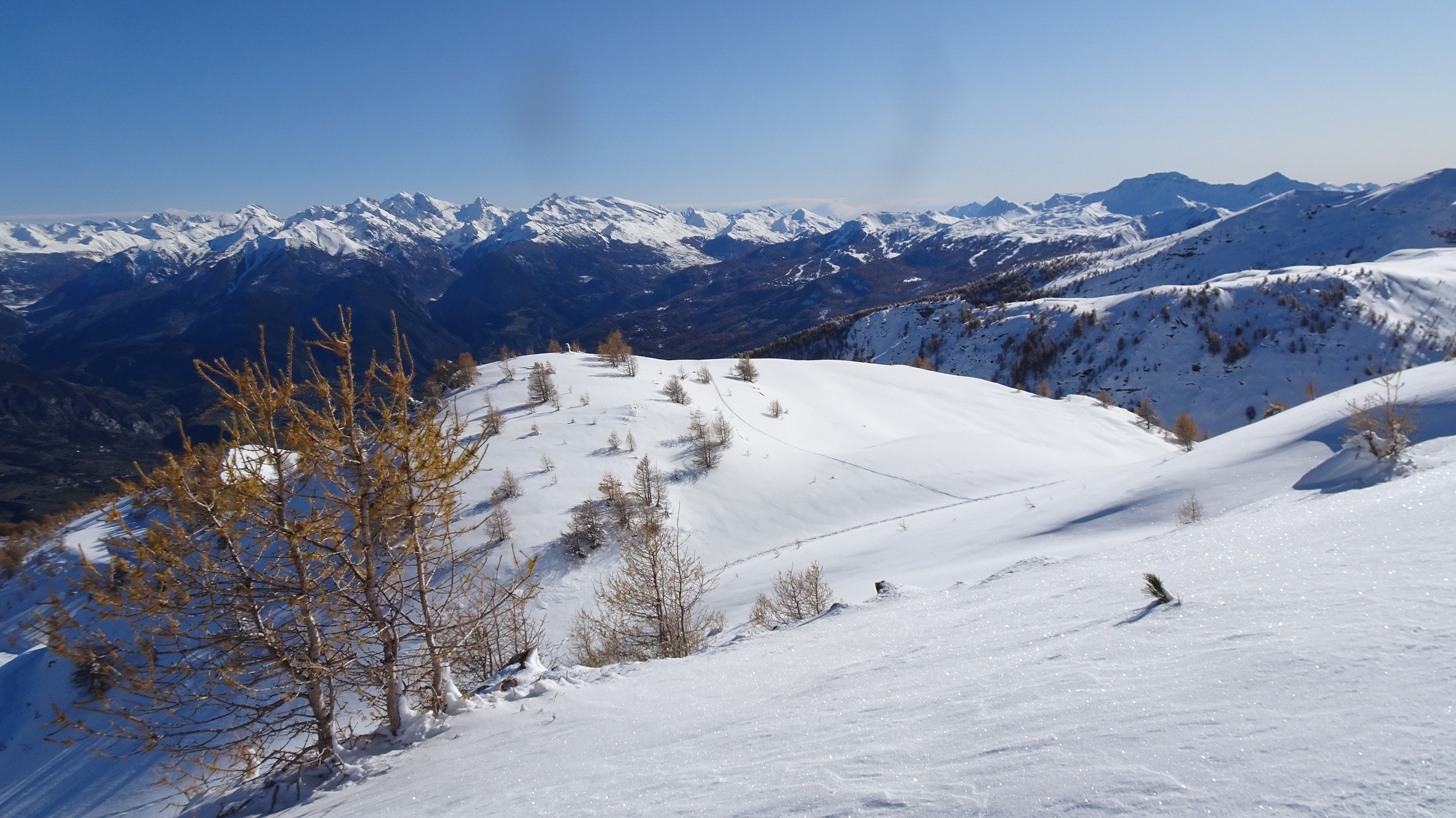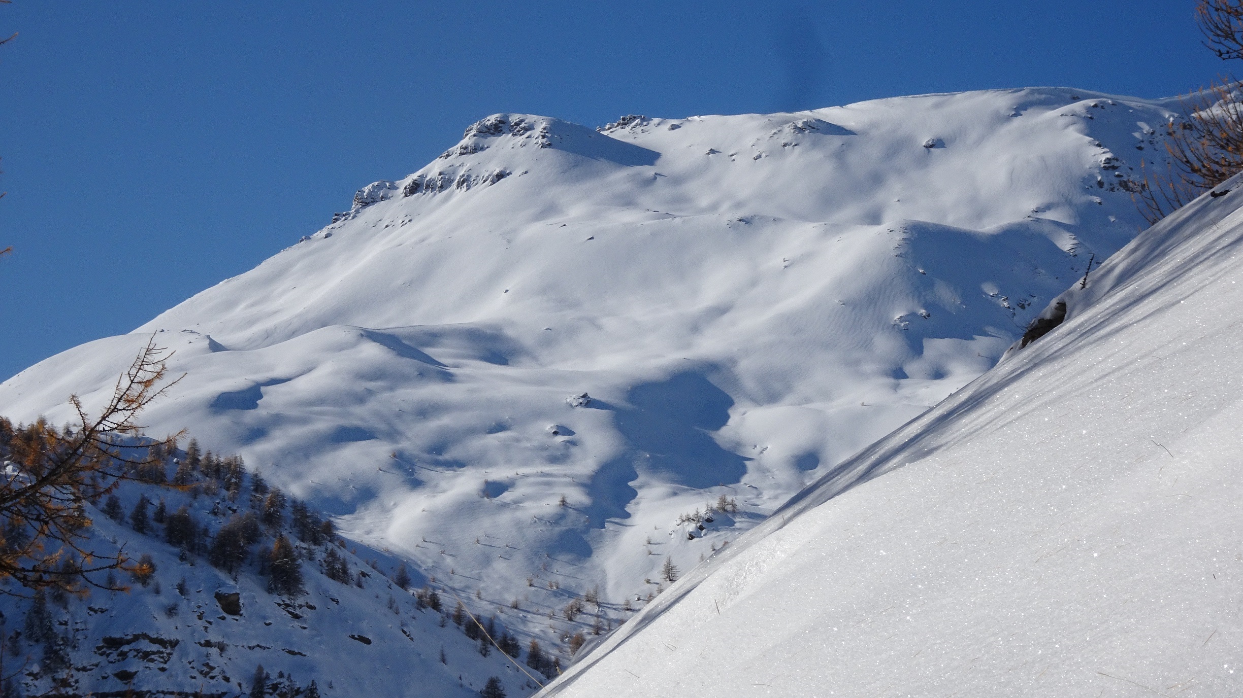 Sortie domestique pour voir l'enneigement et profiter d’un temps magnifique. Sauf si on monte en voiture jusque vers 1800/1900 secteur à éviter car pas encore assez enneigé. Parfait au dessus de 2400.