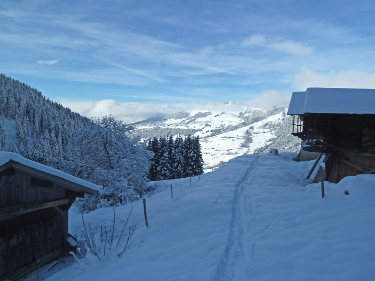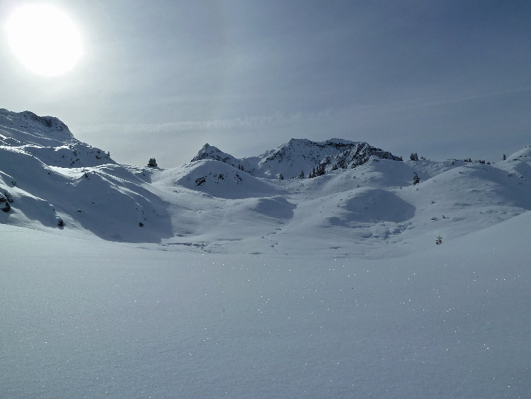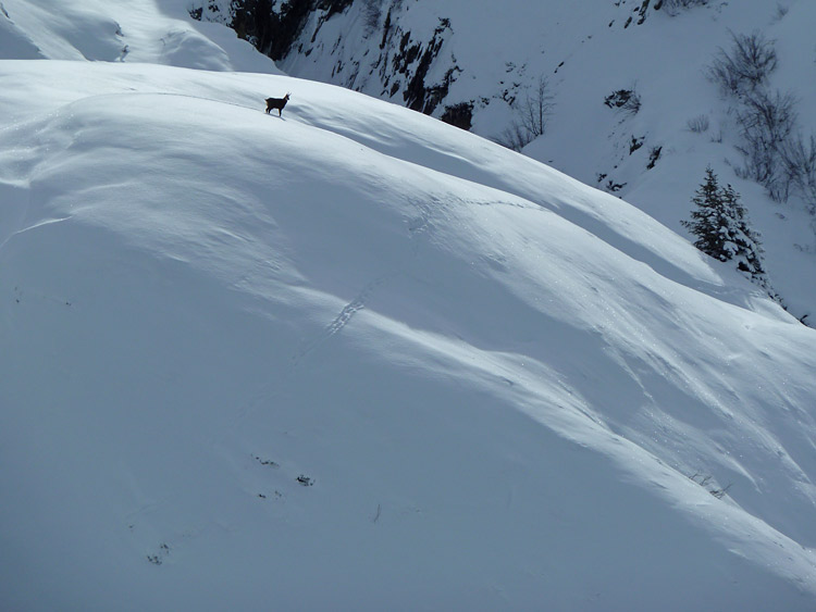 Un coin désert ce jour, vu les quantités sous 1500 m c'est logique. Mais plus haut que 1600 ça ressemble à du ski et si on ajoute les belles lumières et un peu de faune sur le parcours cela fait une bonne sortie de reprise hors des sentiers battus. Ski limite dans les passages forestiers sous 1600 m avec deux passages délicats pour les semelles (qui n'auront rien reçu au final mais vu le bruit ça fait peur), l'un entre 1580 et 1540 m et l'autre entre 1420 et 1400 m. Par contre le sentier bien caillouteux en partie basse s'évite par la trouée herbeuse.