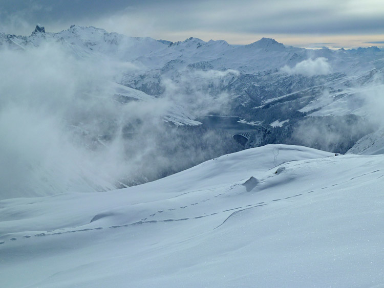 Idem tour décrit dans F6, sauf que j'ai shunté le passage par le canyon de la Sallettaz pas encore assez comblé, en passant par la rive droite (bien en haut - un peu de bucheronnage en bas).