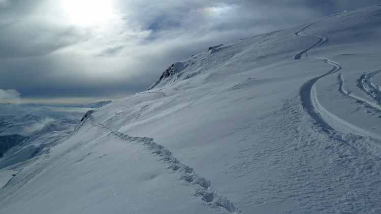 Sous couche présente dans les endroits dégagés à partir de 1450 m - rien en forêt un peu de transport observé, déjà de belles congères à l'approche des crêtes.