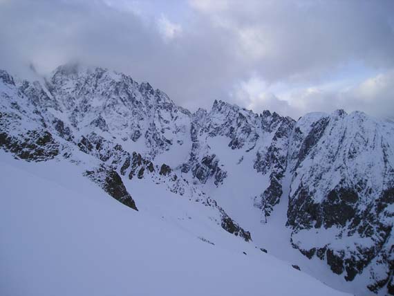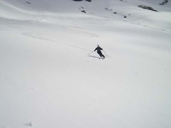 Au réveil sur le parking à 4h00 temps nuageux...Hélène me motive puis quand on démarre le ciel se dégage... Pas de regret d'être sortis car hormis le couloir assez difficile par endroit en raison des reliefs de coulée gelés sous la couche de poudre, la descente fut extra. On a pu s'entrainer à faire des virages sur du 50-55° avec 10 de poudre sur fond dur...Sous le couloir avec une neige régulière c'était du bien bon ski.