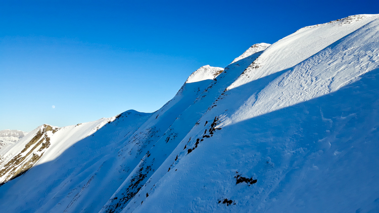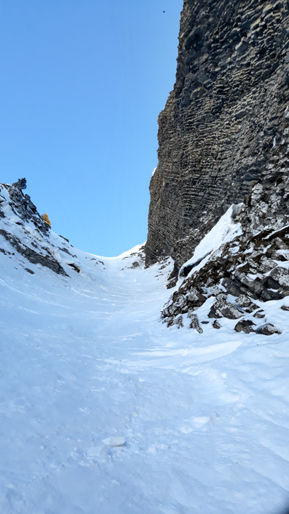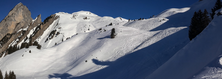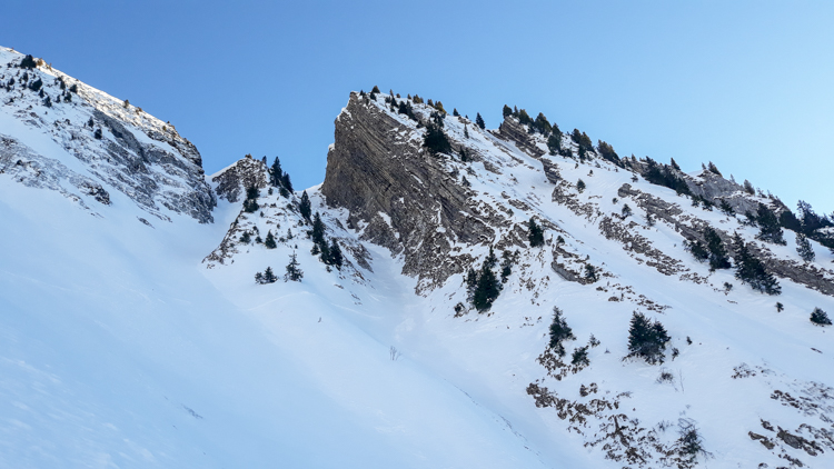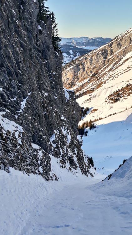 Un sympathique et esthétique couloir sur la crête Mandallaz-Aiguille de Manigod, l'un des rares non tracés dans le secteur ce jour.