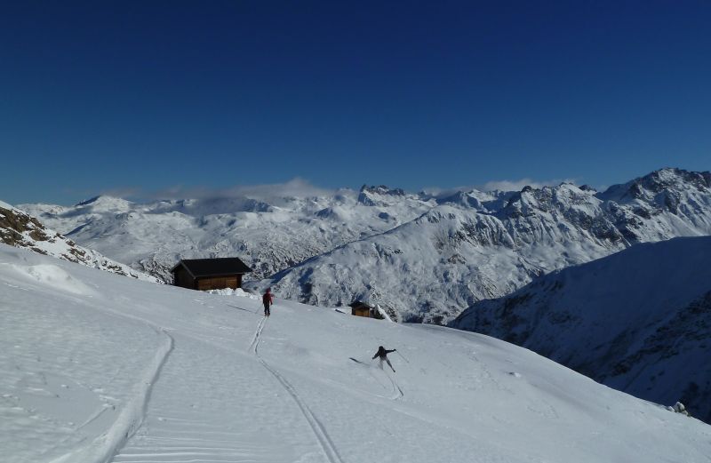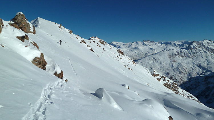 Même si c'est faiblard aux départs de rando, l'enneigement semble vraiment conséquent pour la saison au-dessus de 2500m. Faisons avec, la montagne capitalise pour le printemps.