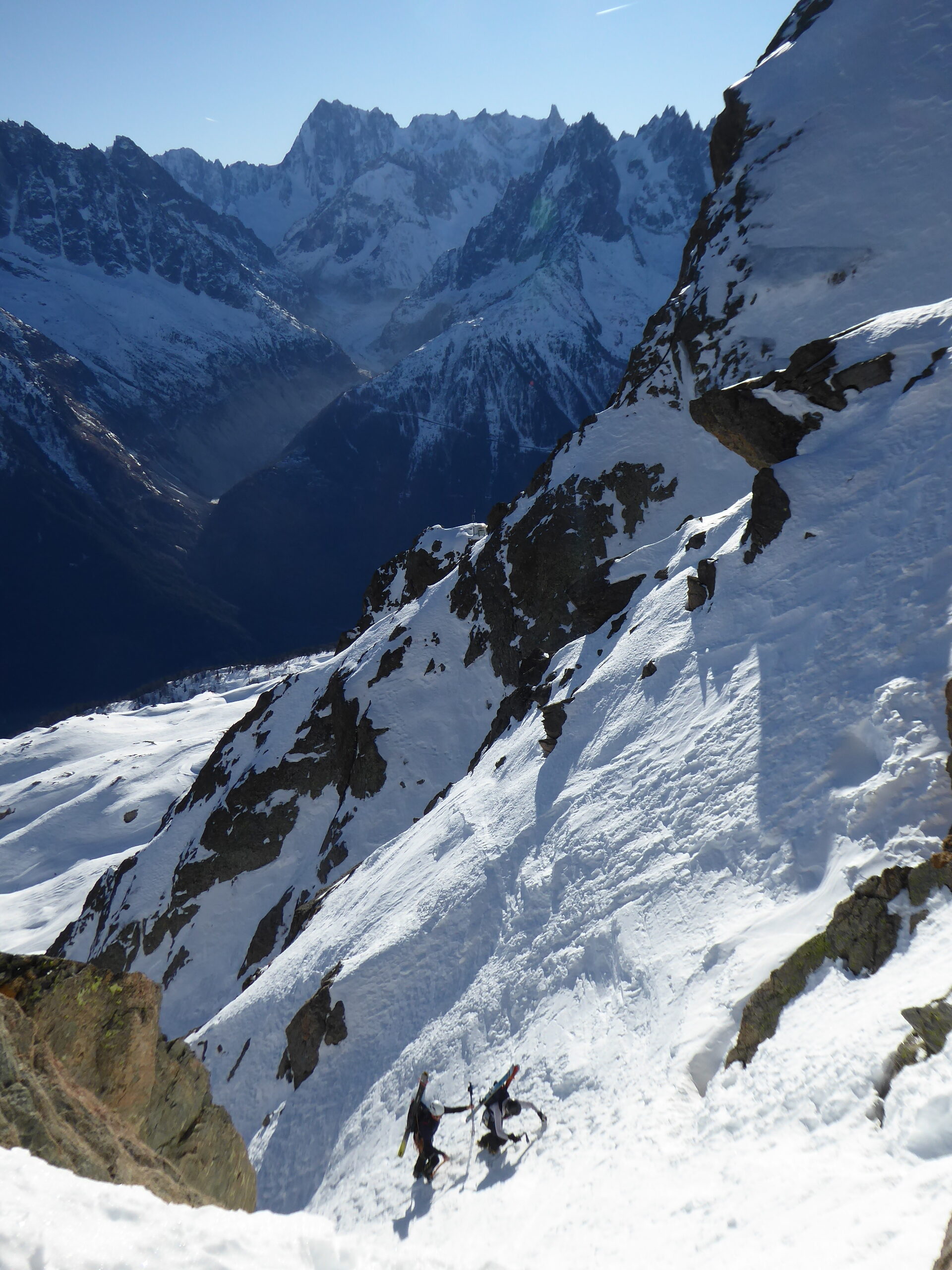 A9 (Crochues-Bérard) jusque vers 2100 dans le vallon de Bérard. Montée à l'épaule sous le col de Beugeant. Descente sur le col de l'Encrenaz. Descente de la combe de l'Encrenaz jusque 2300. Remontée au lac Blanc puis descente sur la Flégère.