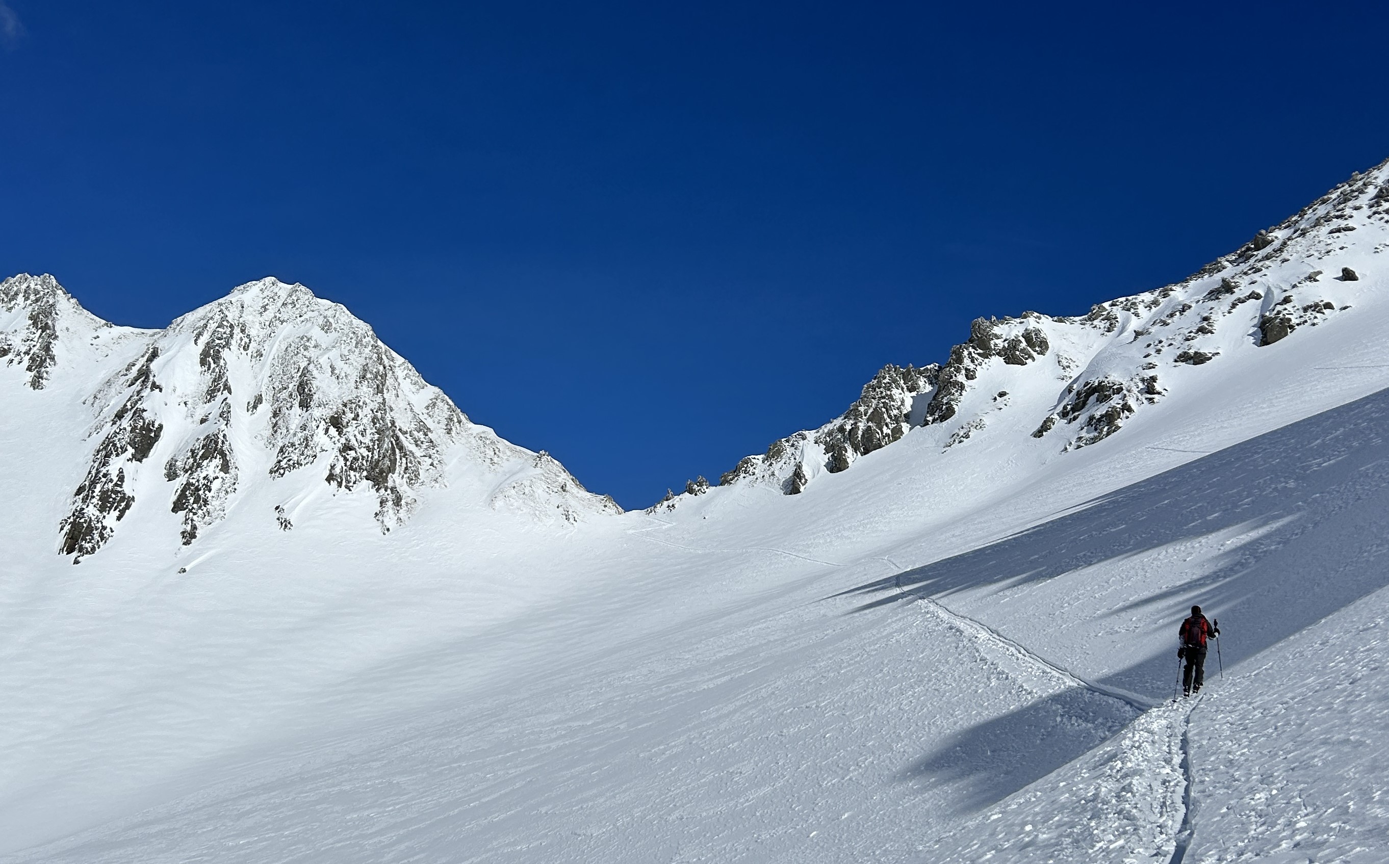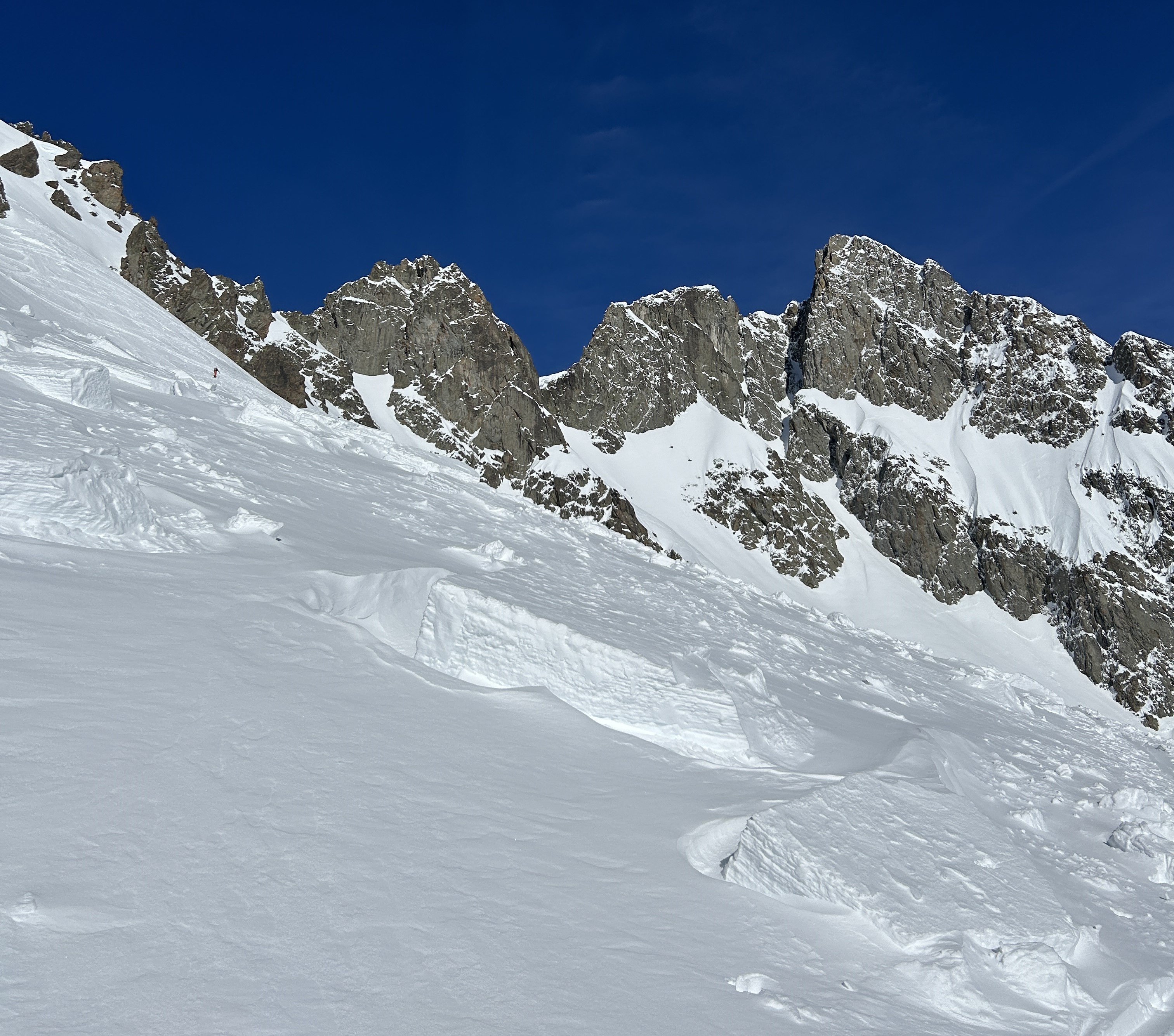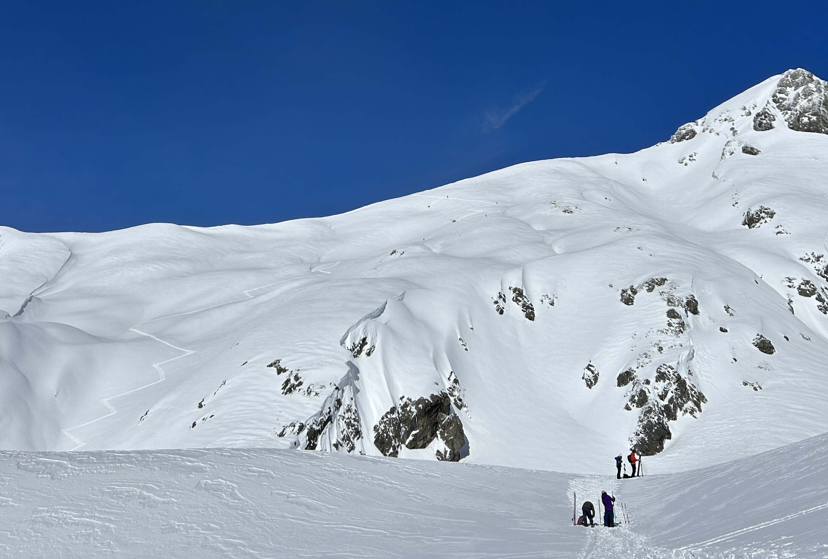 Les dernières chutes de neige ont apporté jusqu'à 30cm de neige au-dessus de 2000. Avec le transport, il y avait des accumulations jusqu'à 40cm dans la première montée au-dessus du TK de la Floria. Pour autant, pas de signe d'instabilité dans les pentes parcourues.