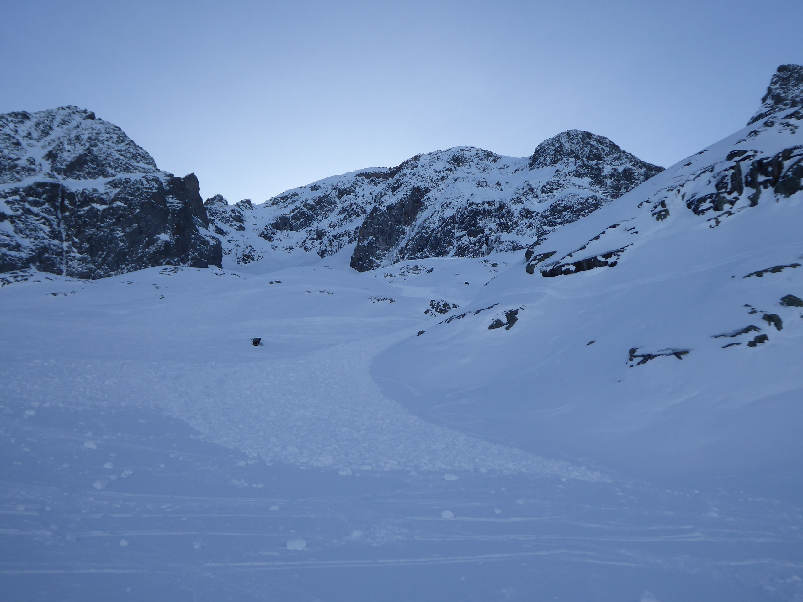 Neige transfo dans les orientations sud, vieille poudre au nord. Quelques plaques sont parties dans le vallon de Bérard après le dernier épisode neigeux, certaines déclenchées en cascade semble t-il par le passage de skieurs au départ.