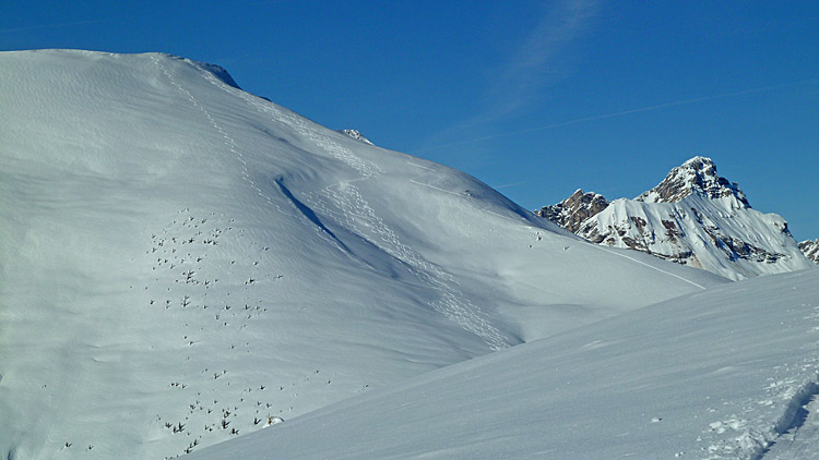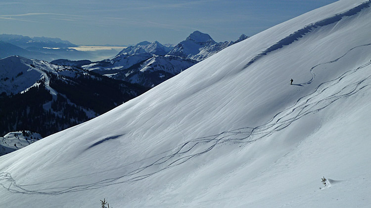 Je m'attendais à pire coté ski mais ça ne reste pas si mal que ça plus haut que 1700 m, avec une bonne "voloneige" sous le petit Croisse et une croutée revenue des plus agréables à skier dans le versant sud du grand Croisse.