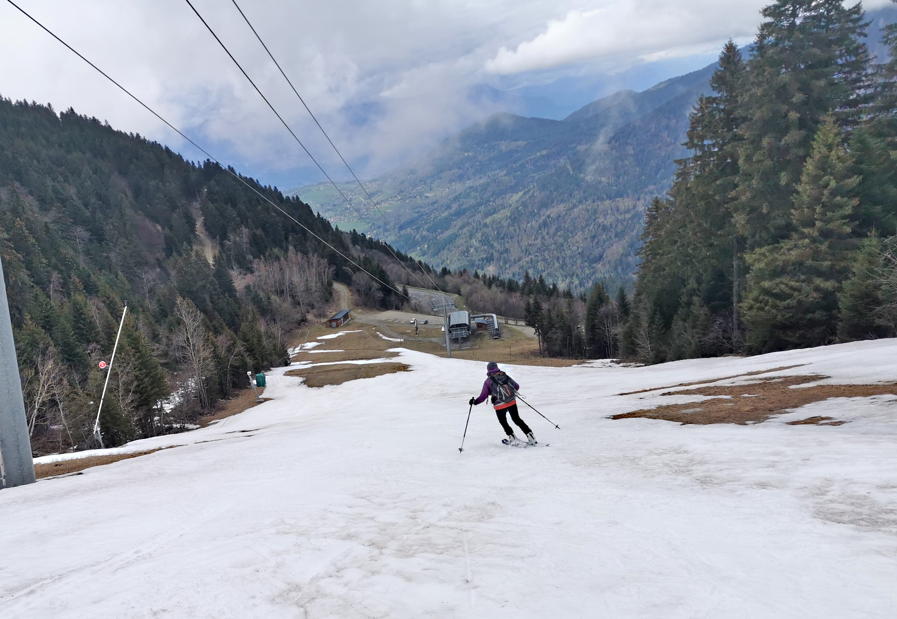 Il a (peu) neigé et très irrégulièrement. A quelques mètres d'intervalle on trouve de très petites accus (20 cm max > 2000) ou presque rien. On redécouvre ce faisant certains épisodes de la saison : glace grise du déluge de décembre, névé rougi par le sable…